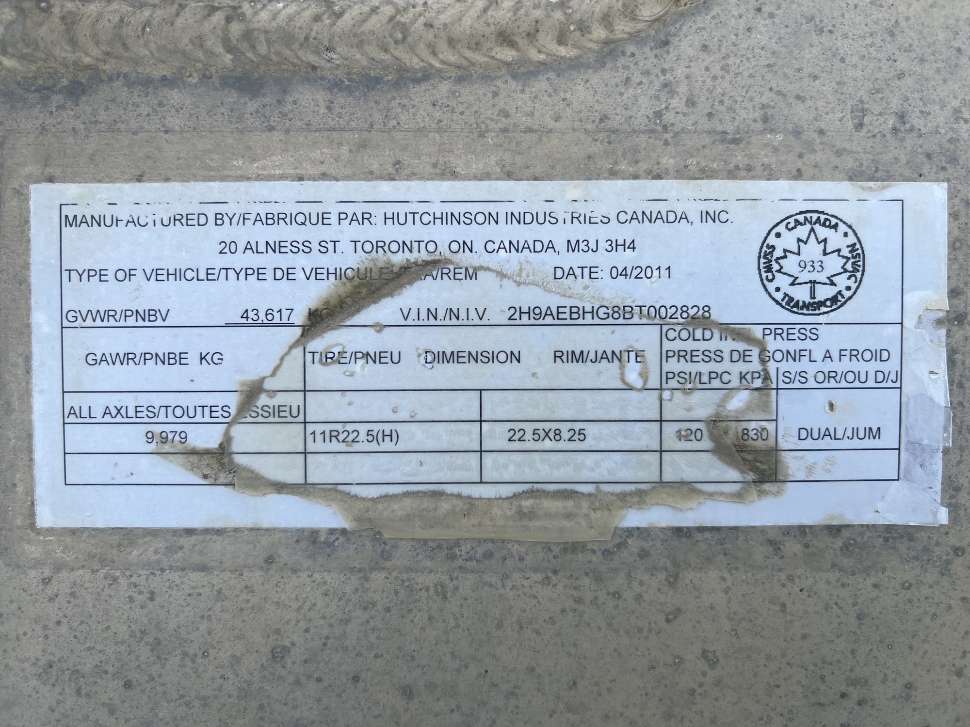 GAWR All Axels: 9,979 KG