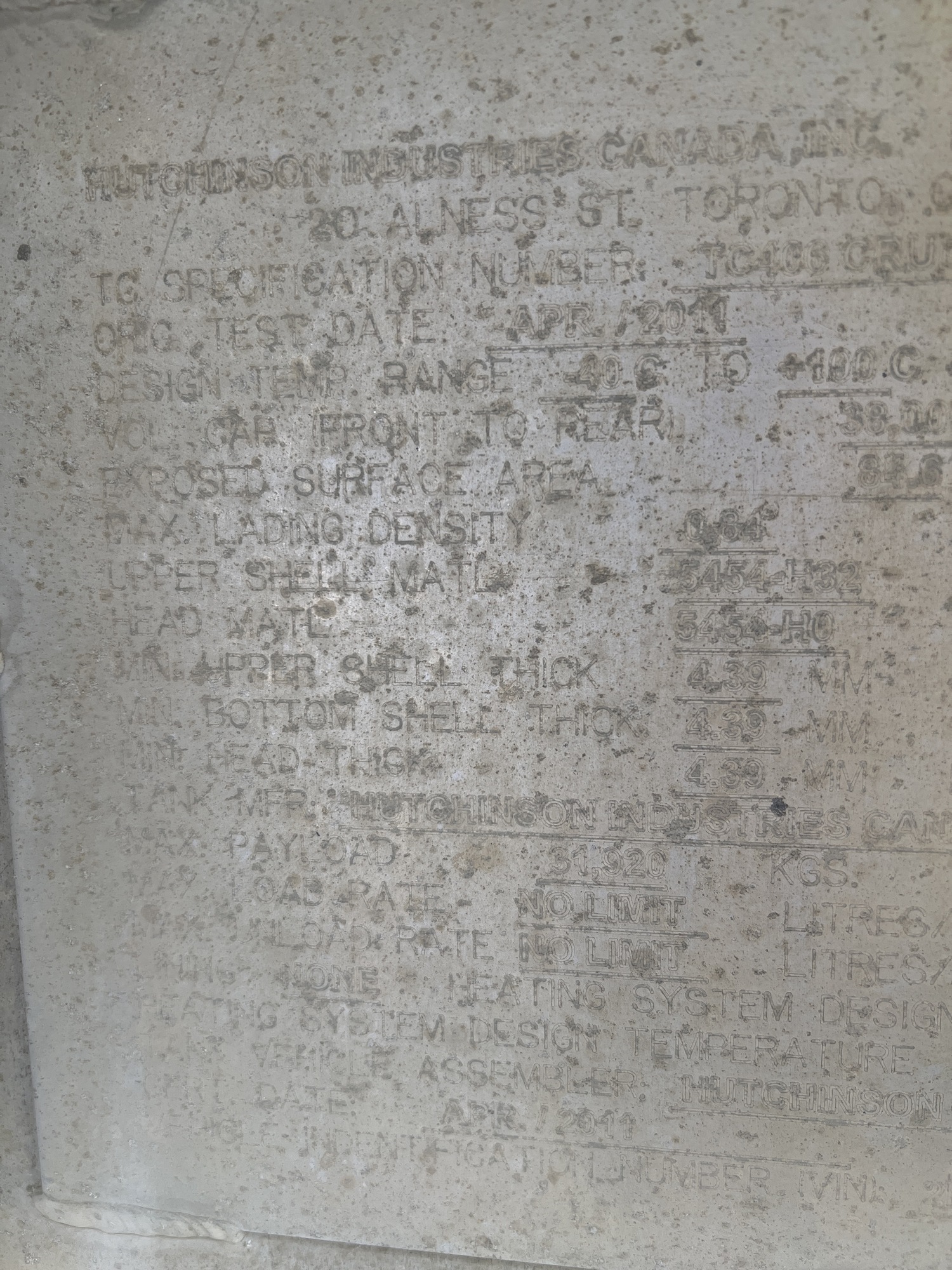 VOL. CAP. Front to Rear: 38,000 L
