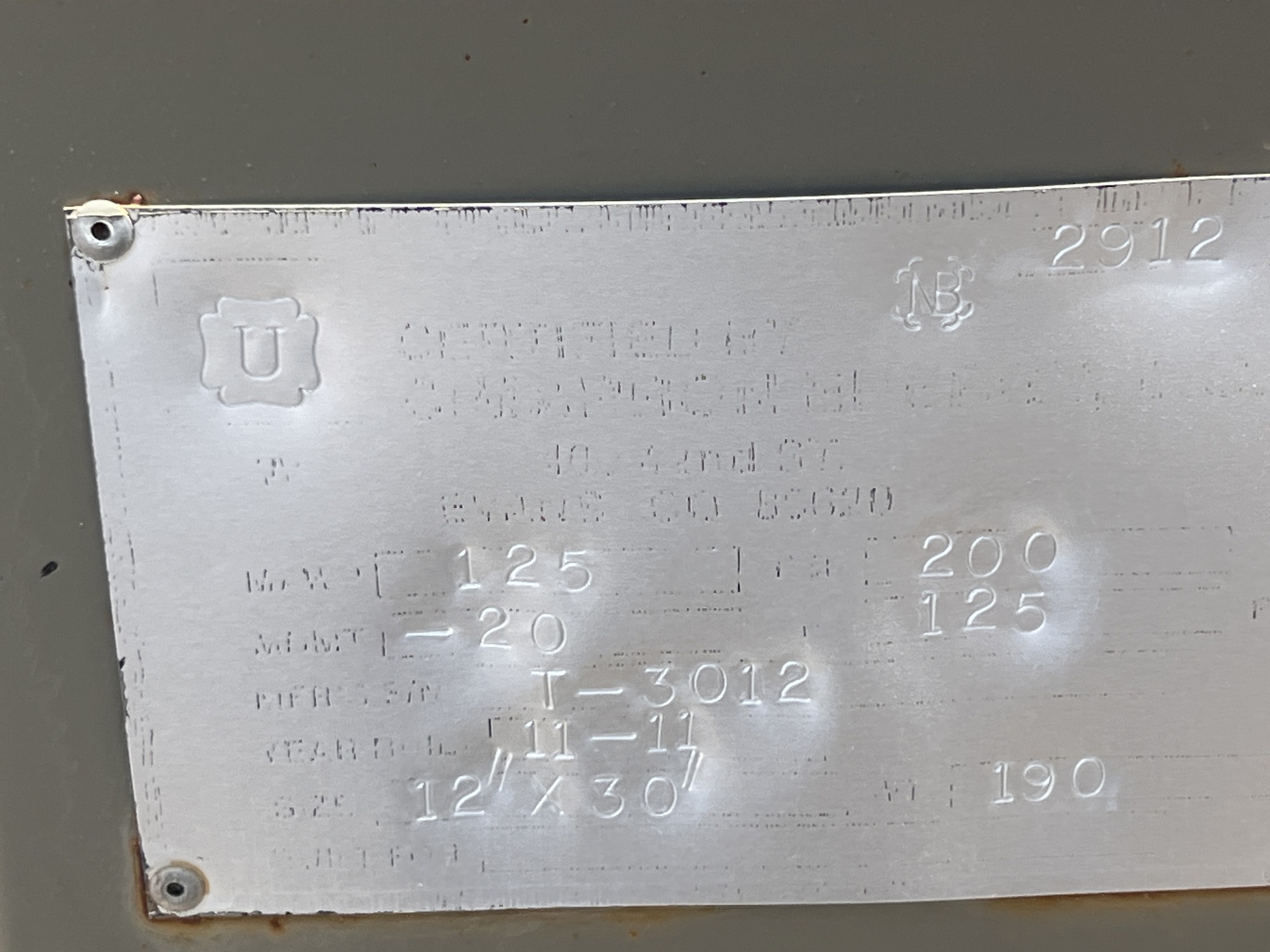 MAWP: 125 PSI @ 200°F