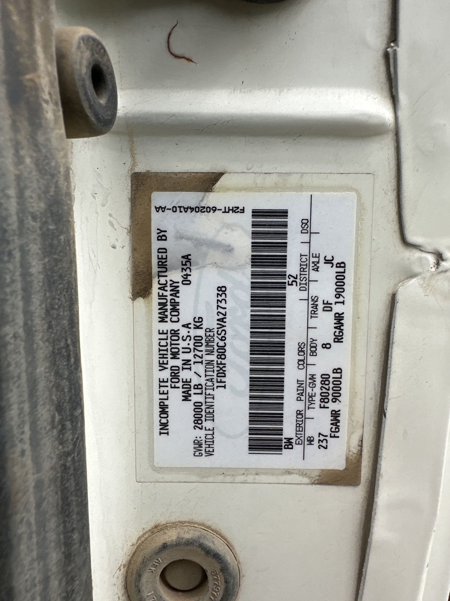 Serial# 1FDXF80C6SVA27338