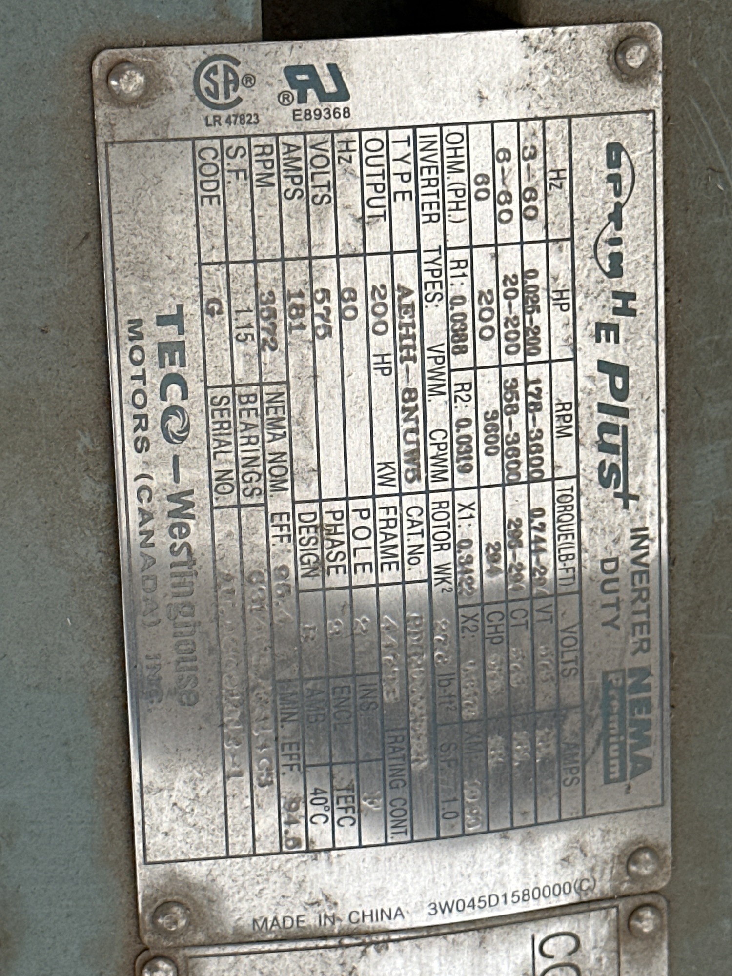 Electric Motor TECO Westinghouse OPTIM HE Plus Premium Sever