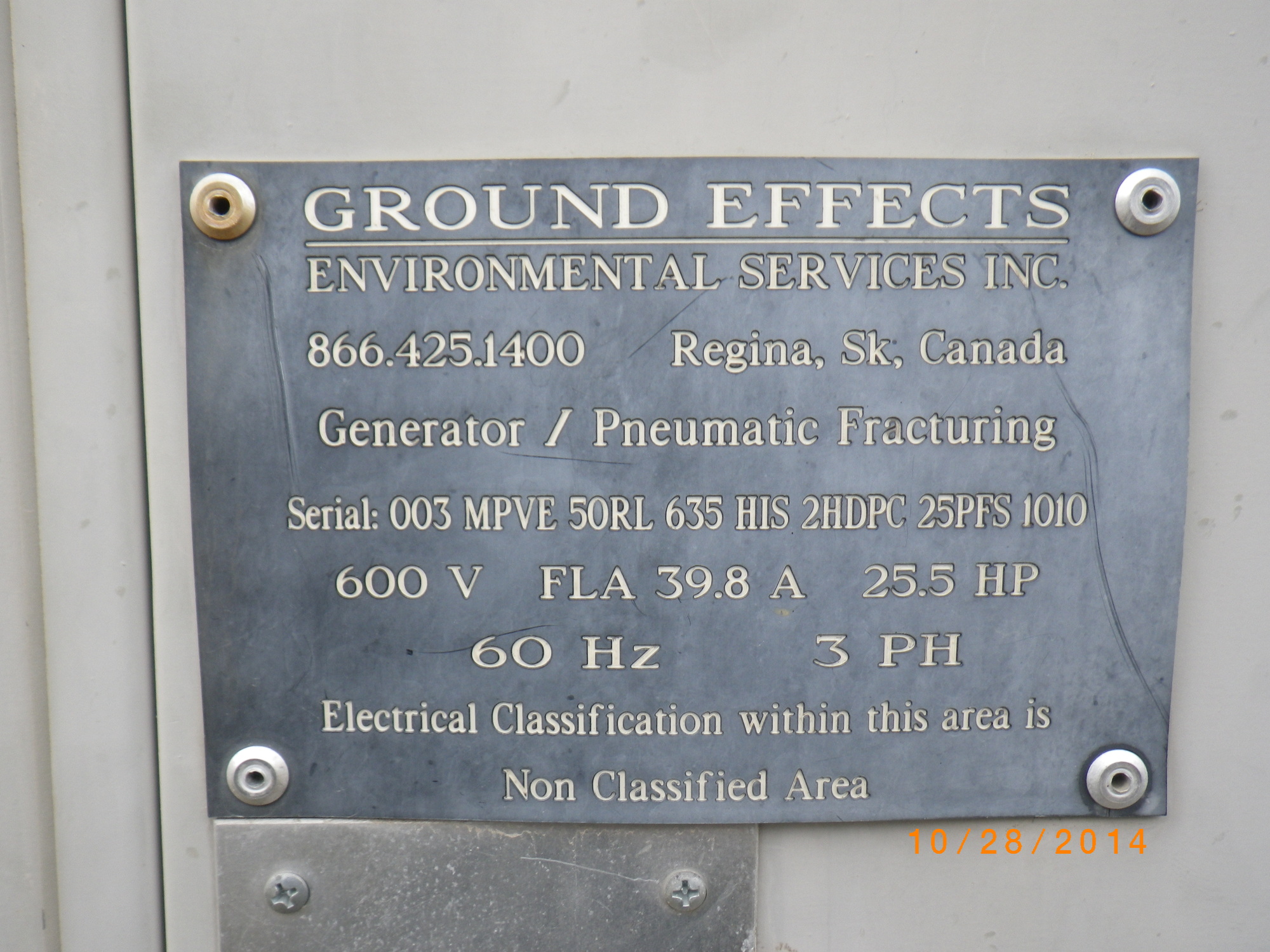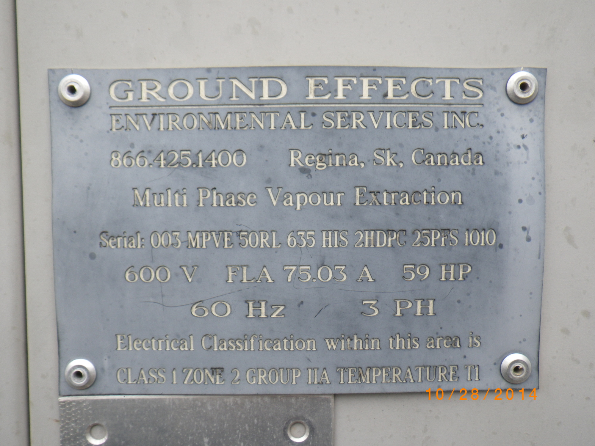 Serial# 003 MPVE 50RL 635 HIS 2HDPC 25PFS 1010