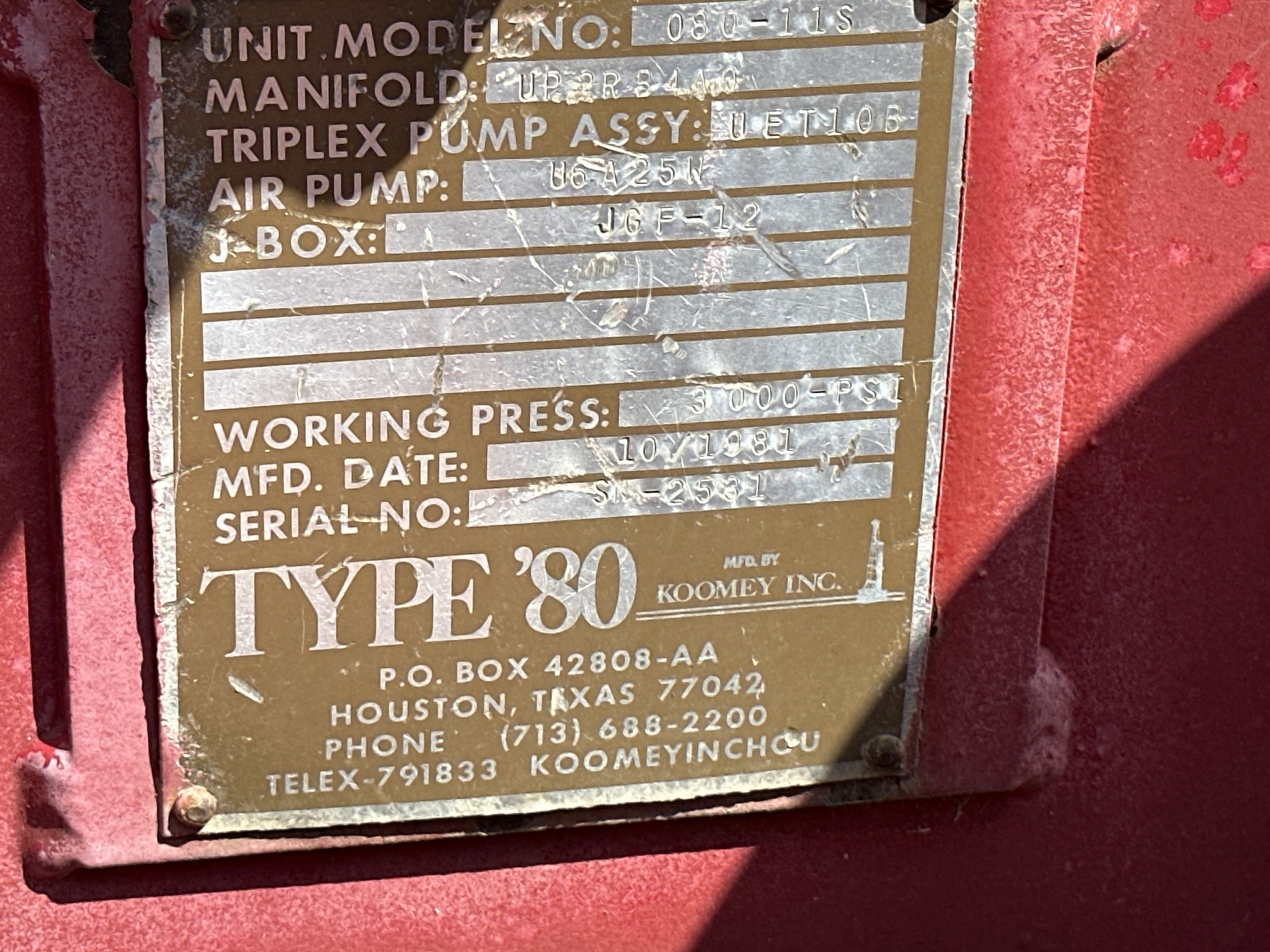 Manufacturer Koomey Equipment INC.