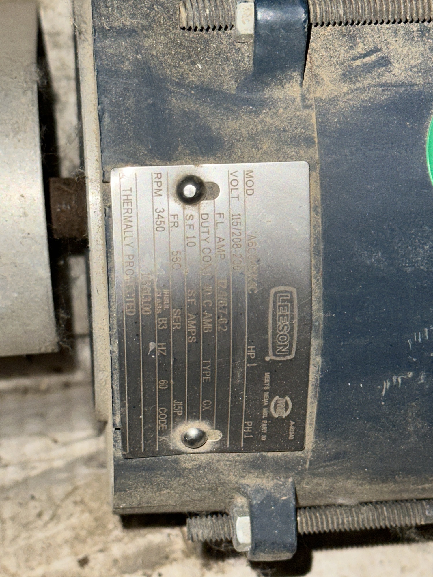 Leeson Motor 1HP 115V 1PH 3450RPM Model# A6C34XK4C (USED) x 3