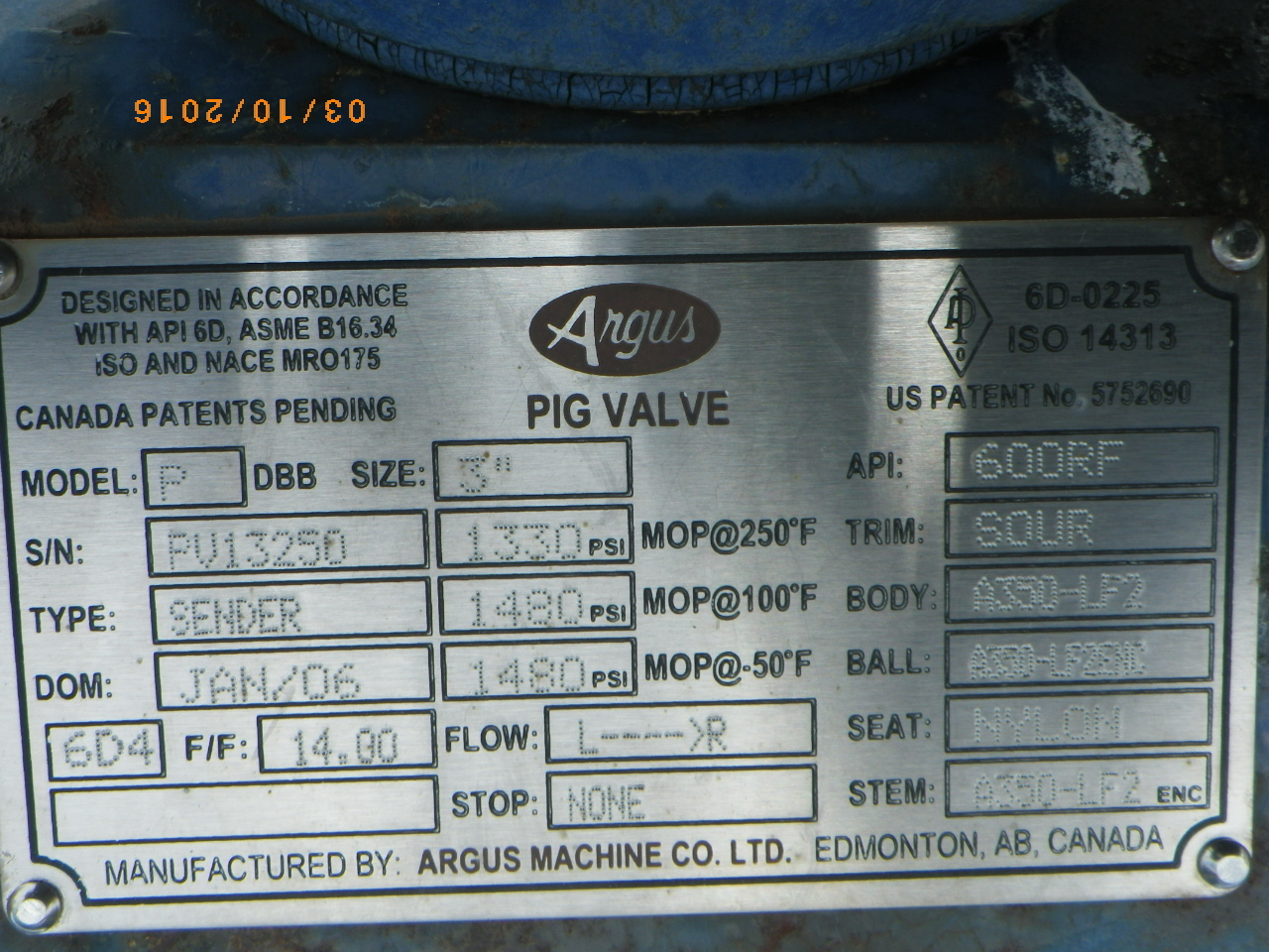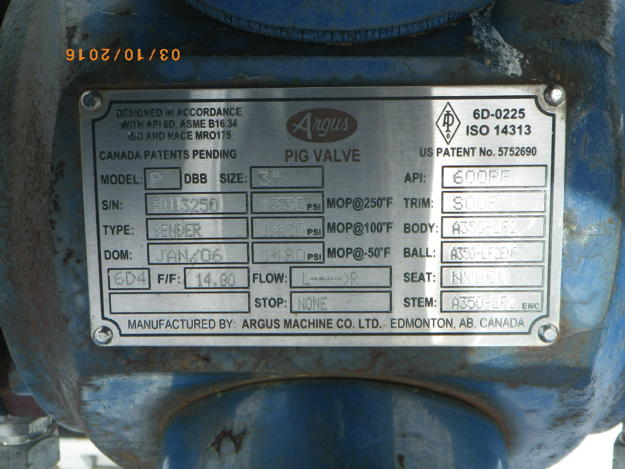 PIG VALVE - 3" - SENDER