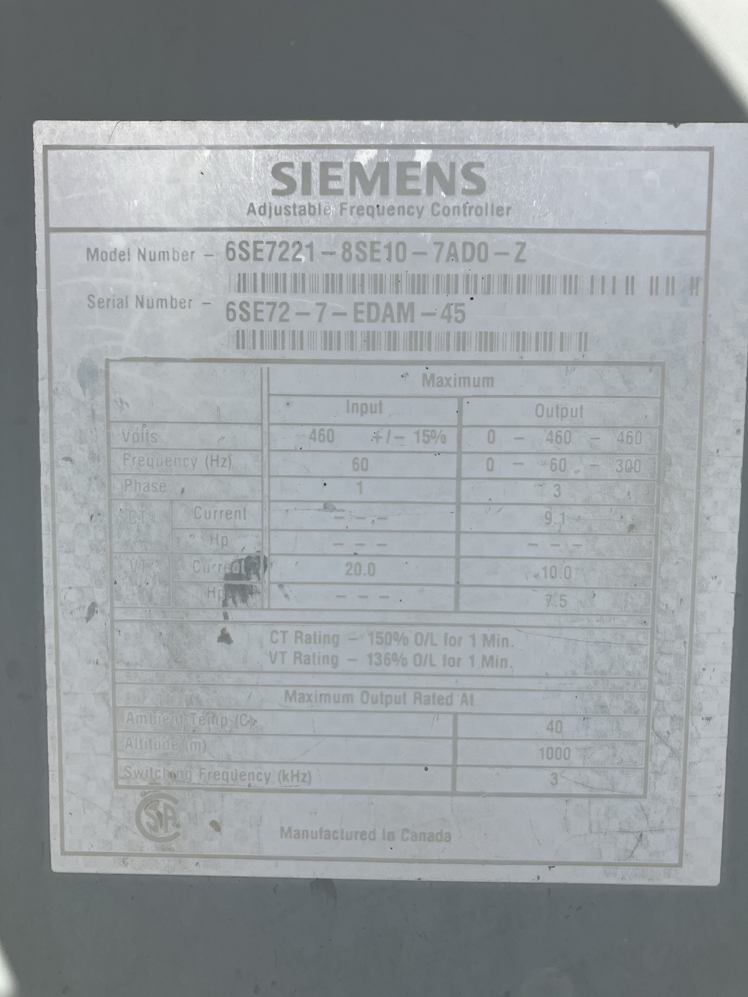Serial# 6SE72-7-EDAM-45