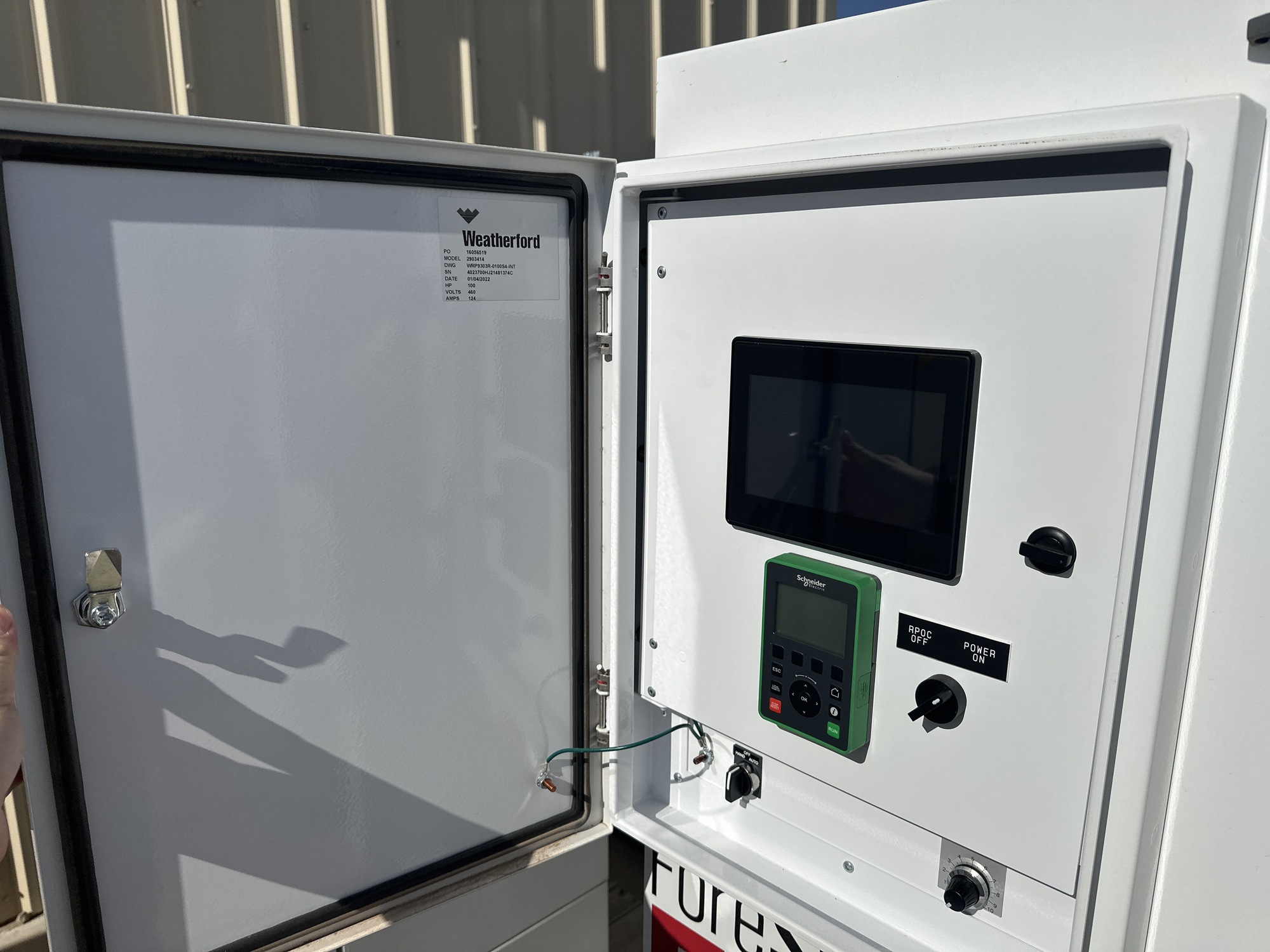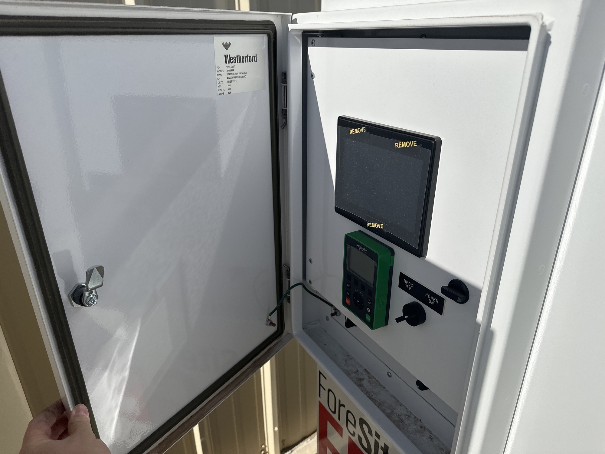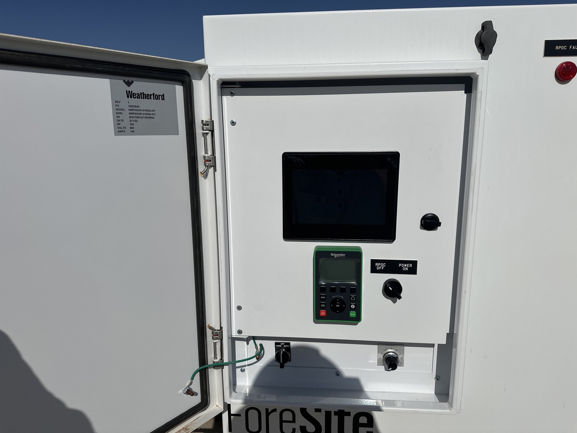 100 HP-Forsite Edge C RRL VSD, ATV9 KIT, BRAKING RESISTOR AND INSTALLATION KIT 6AWG 13 KW RES KIT, RPOC EXP IO, INSTALL, LOAD CELL POLISHED 50K, FLINTEC, CABLE LOAD CELL 100FT STRAIGHT TURCK INCLINOMETER, TURCK 135 TO225 DEGREE CABLE, INCLINOMETER TURCK 75 FT WITH RIGHT ANGLE CONNECTOR, BASE 6" X 6' X 6' VSD CONCRETE