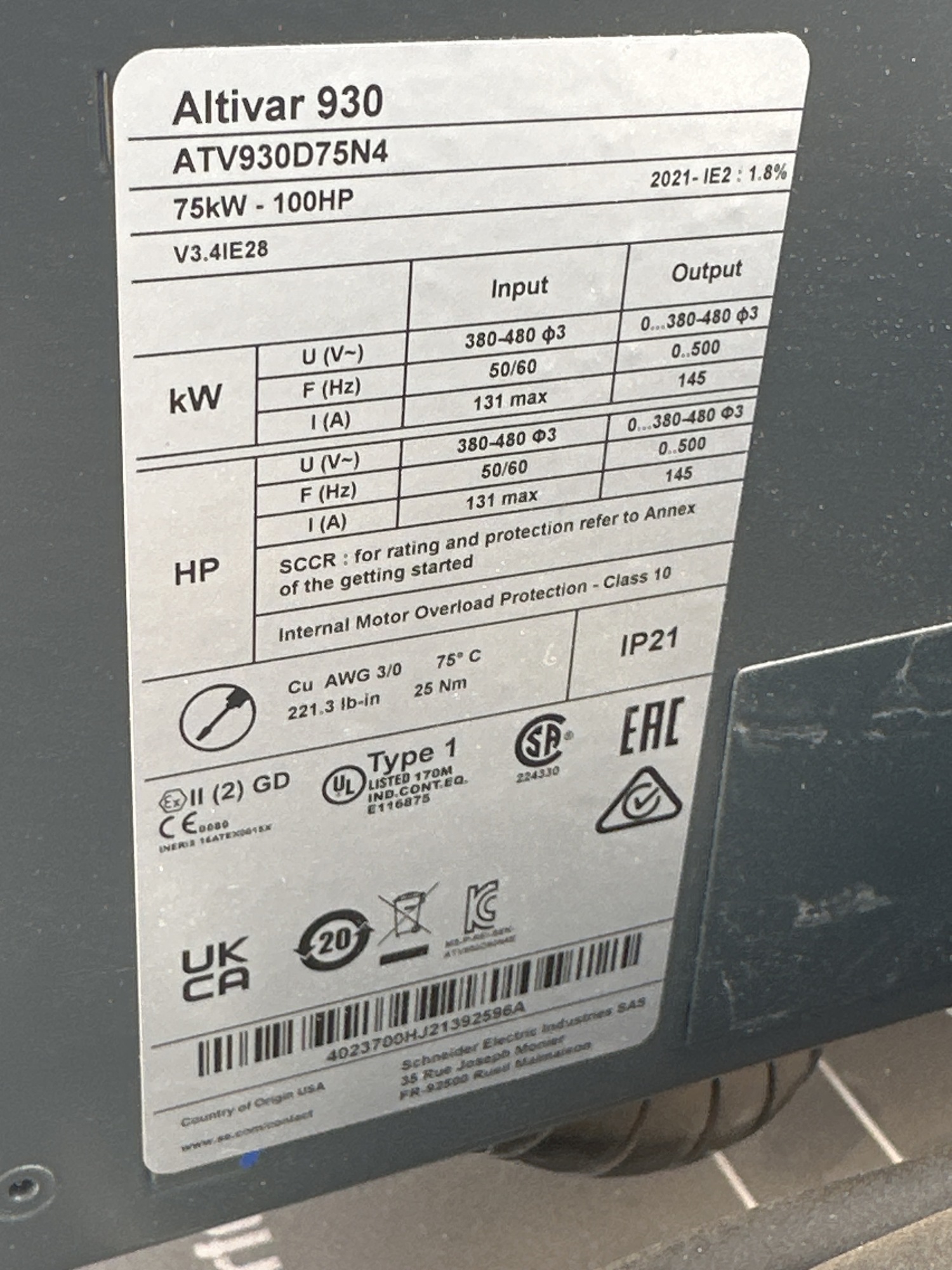 100 HP VSD Information*