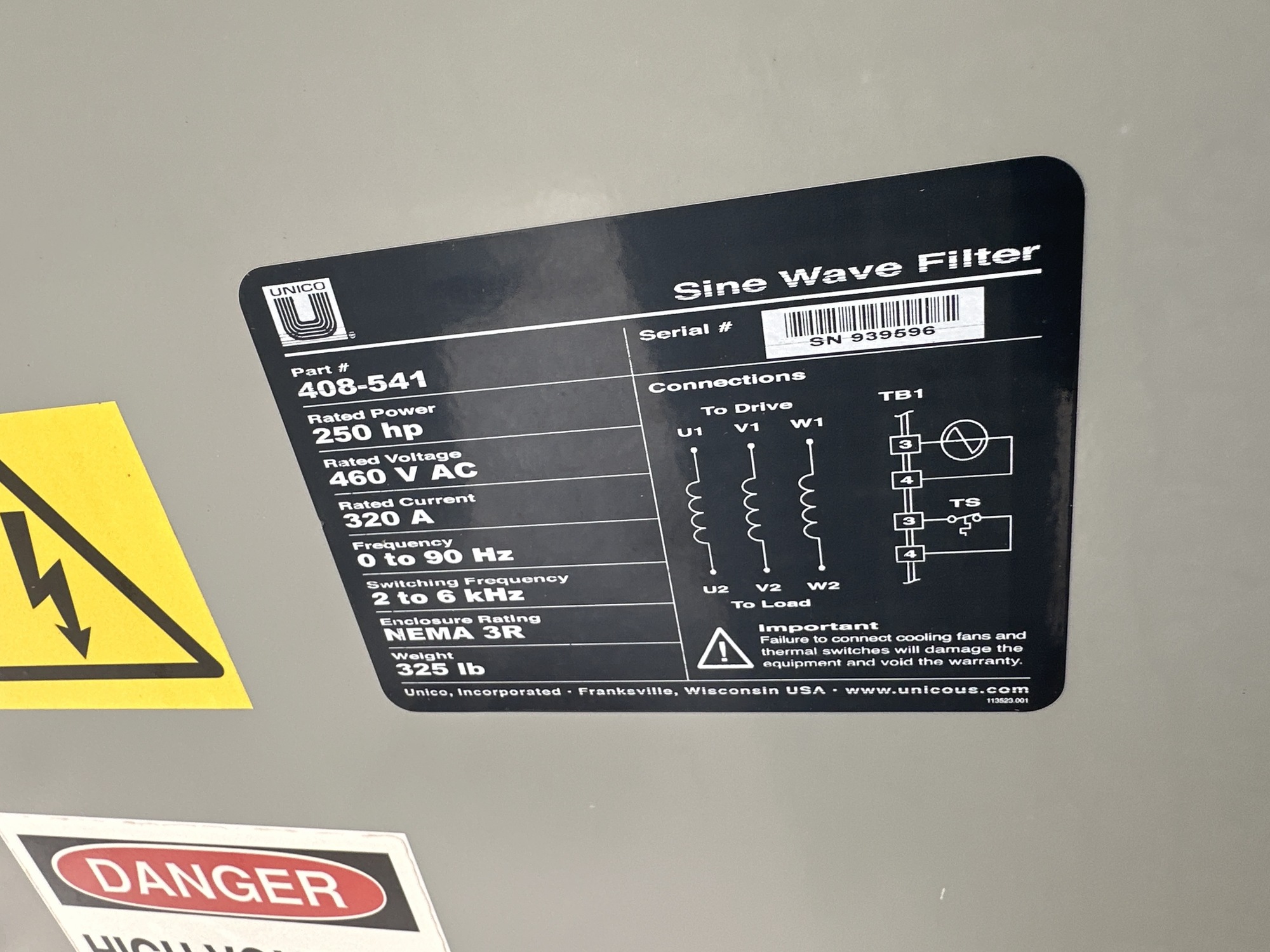 250 HP 460V Sine Wave Filter