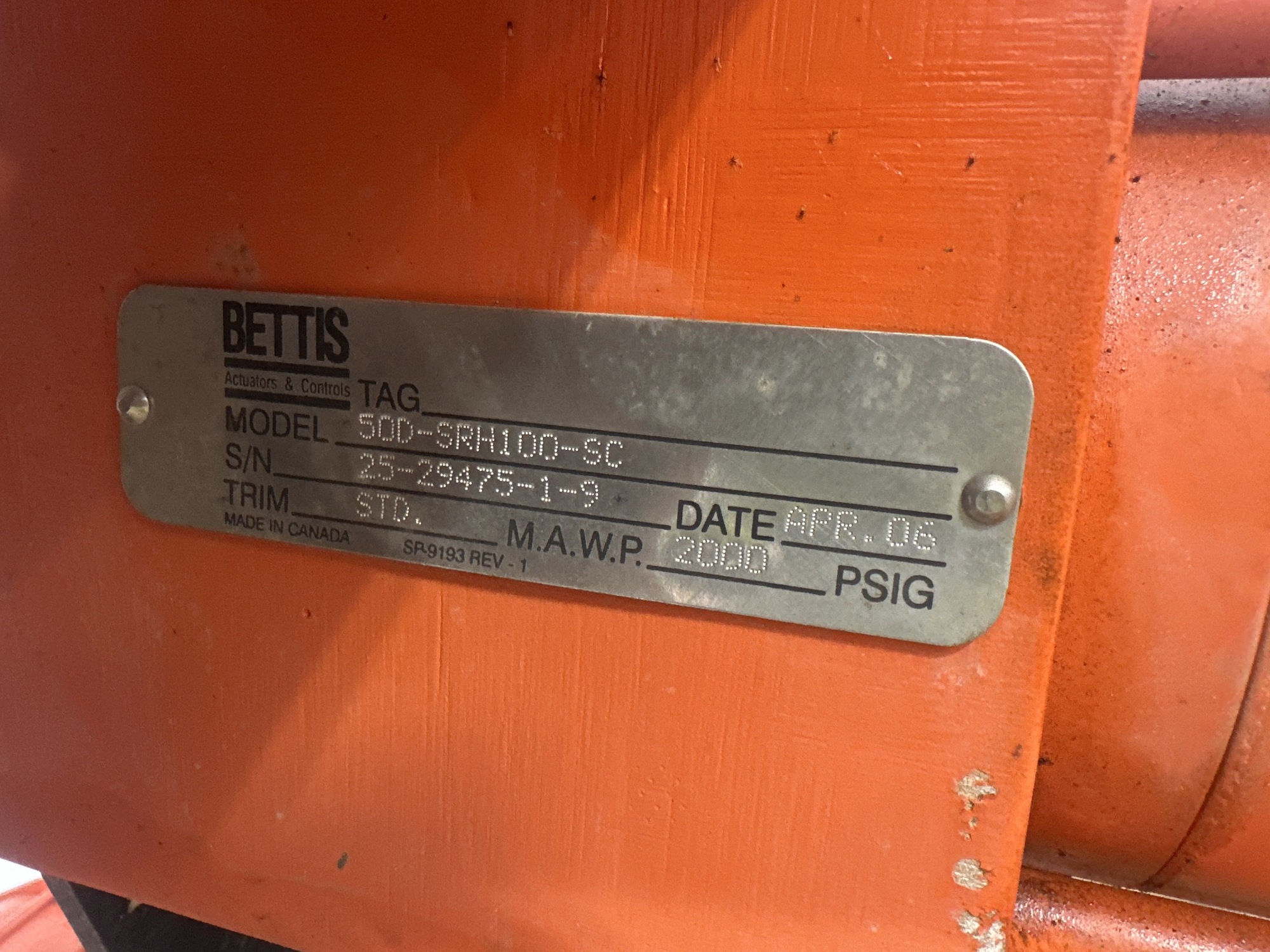 3" Valve W/2000 PSI 50D-SRH100 Hydraulic Actuator
