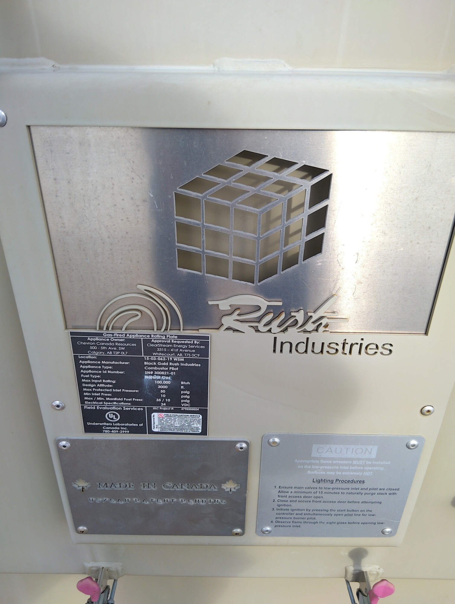 Combustor, 100000 BTU/Hr, Black Gold Industries Combustor Pilot, 50psig Max Inlet Pressure, 24VDC, MODEL BGR-CUBE 10000