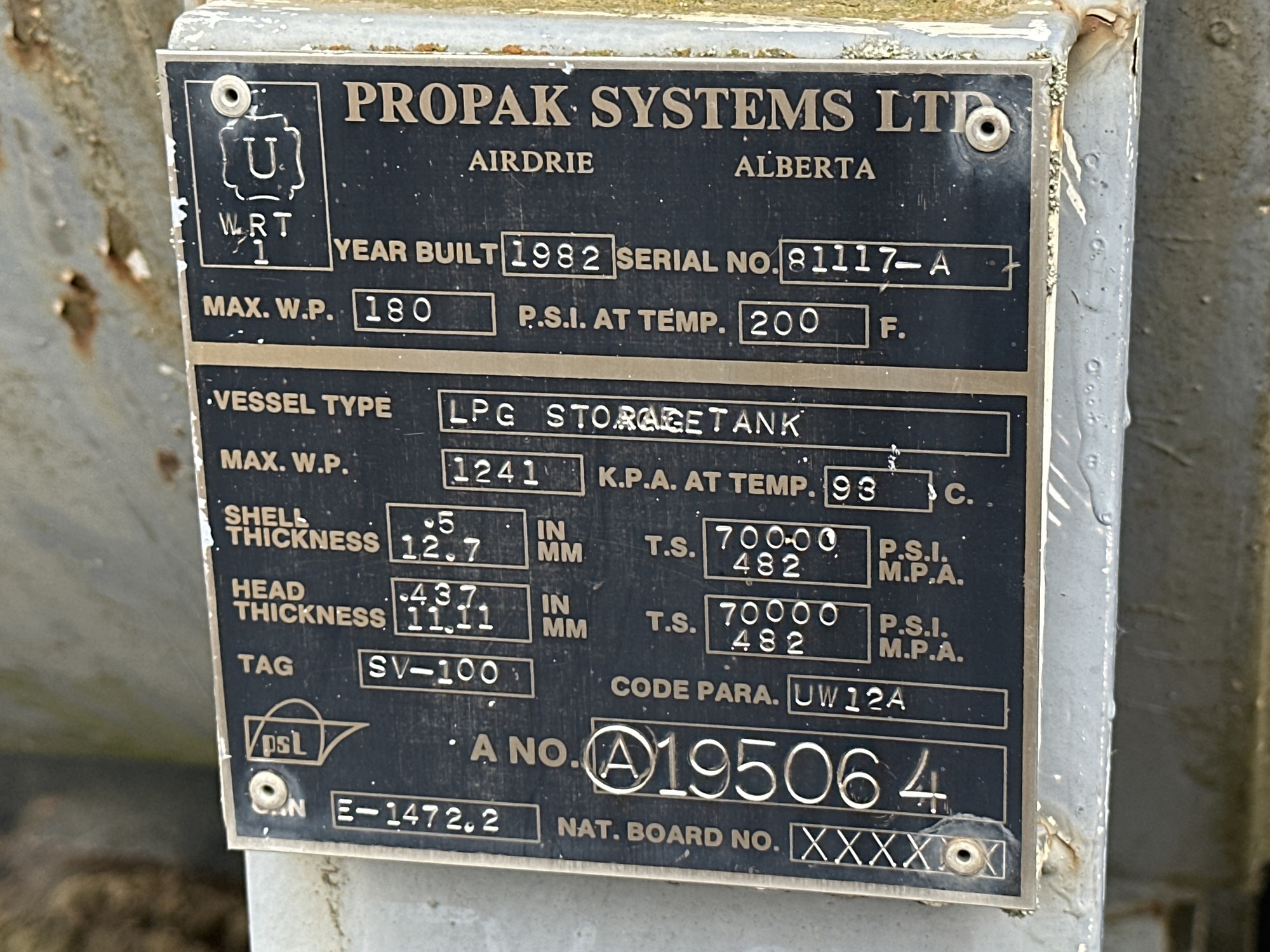MAWP: 180 PSI at 200°F