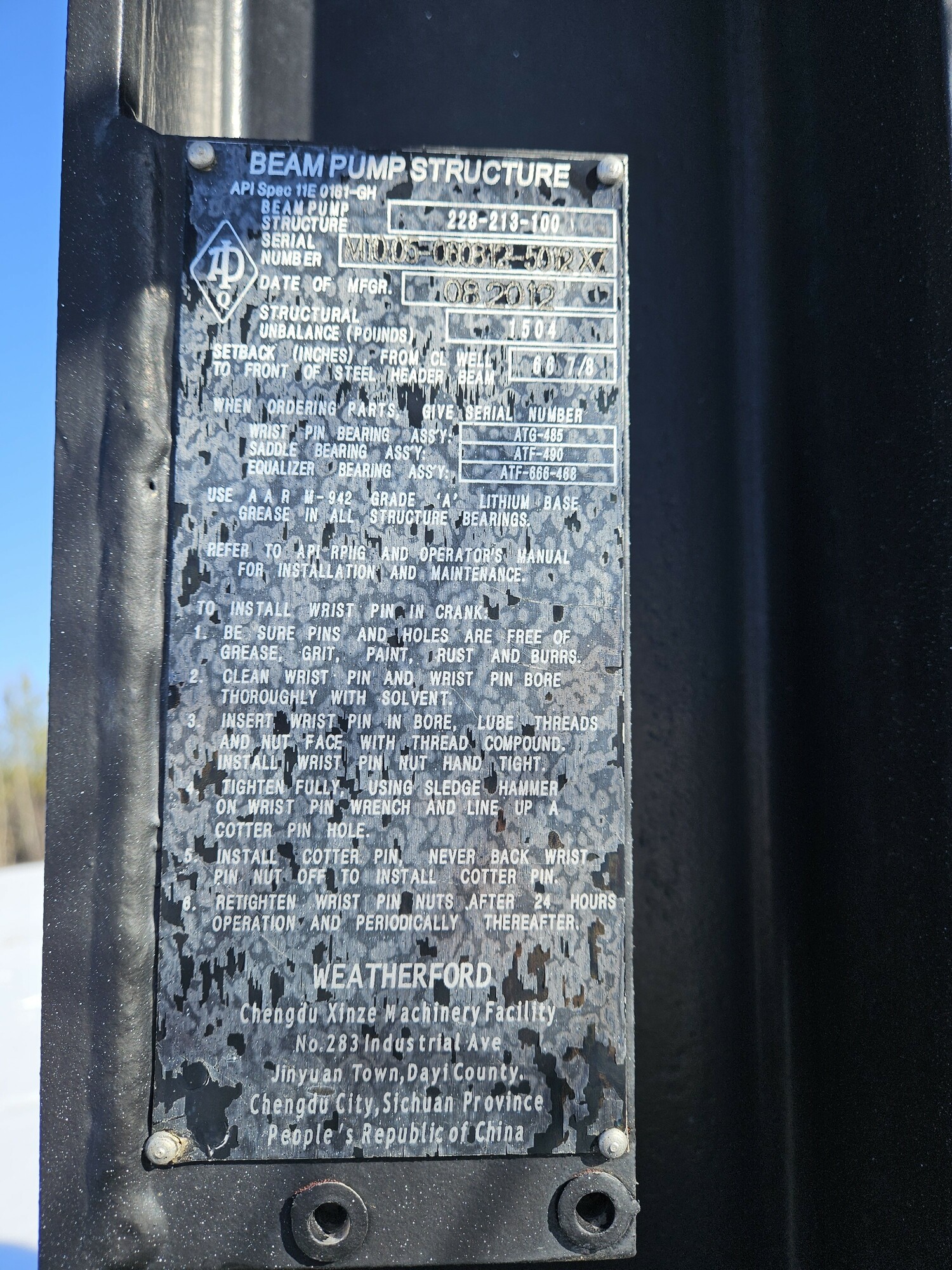 Manufacturer WEATHERFORD