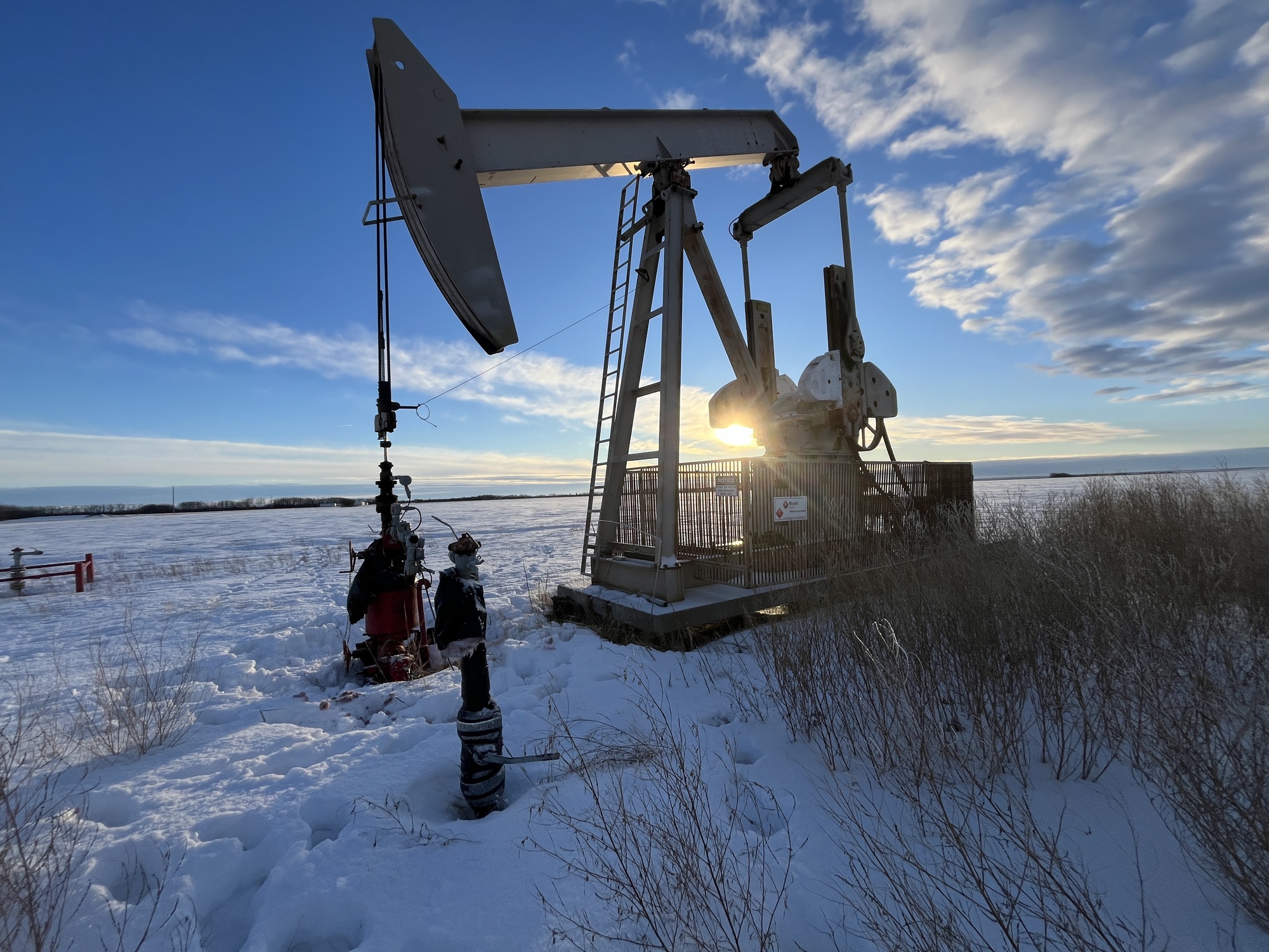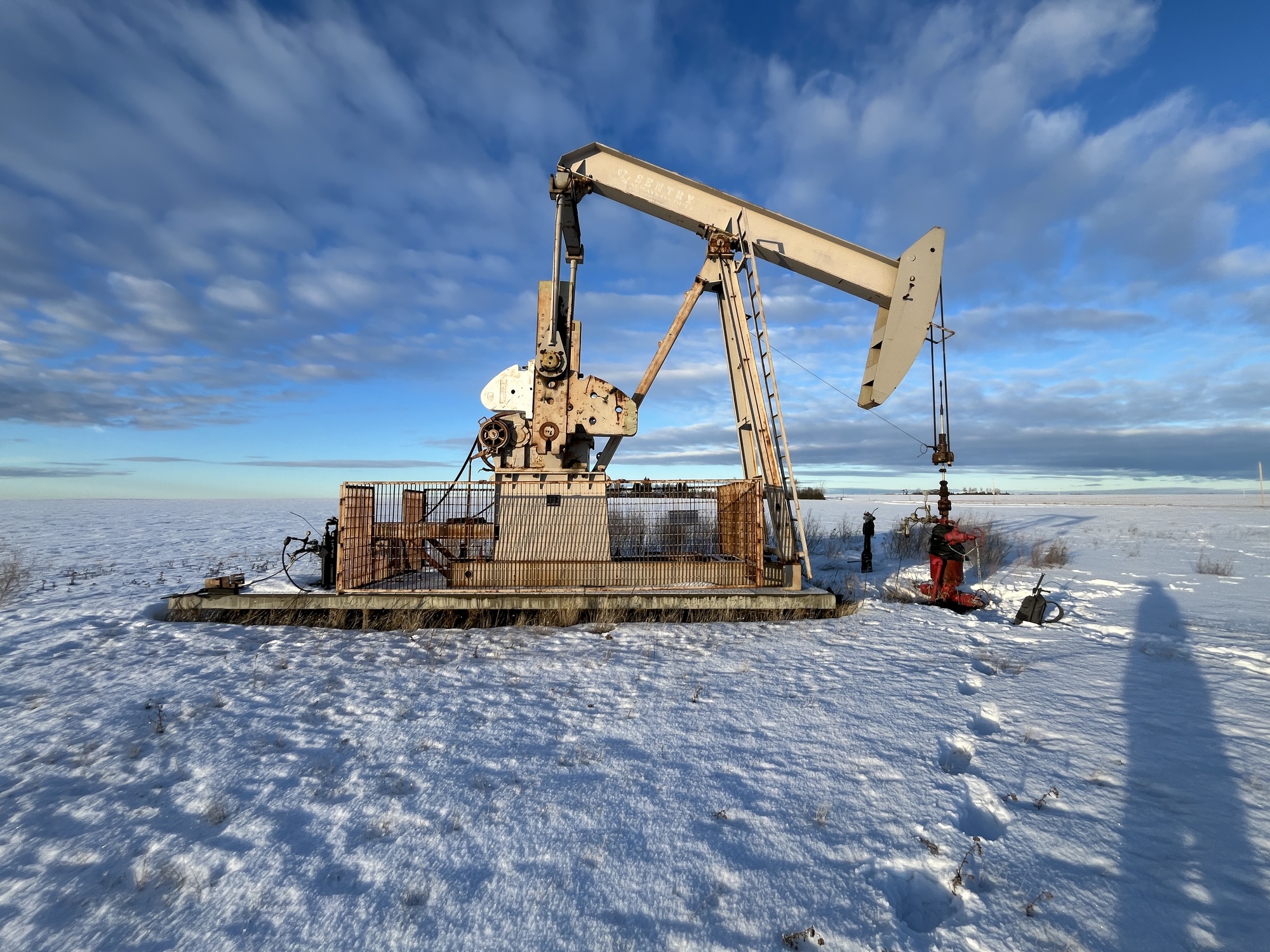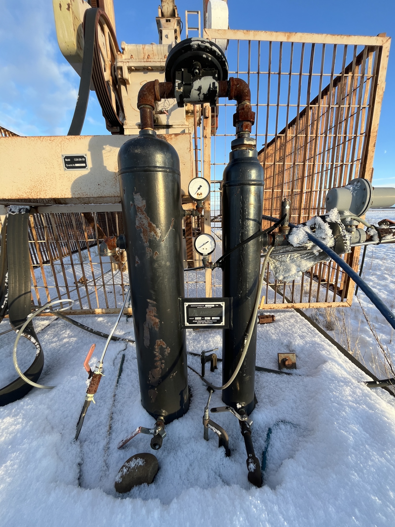 Sentry C320-256-120 pumpjack with gear reducer but engine missing on 8’x30’ cement pad on piles located at 01-07-082-03W6 (100)