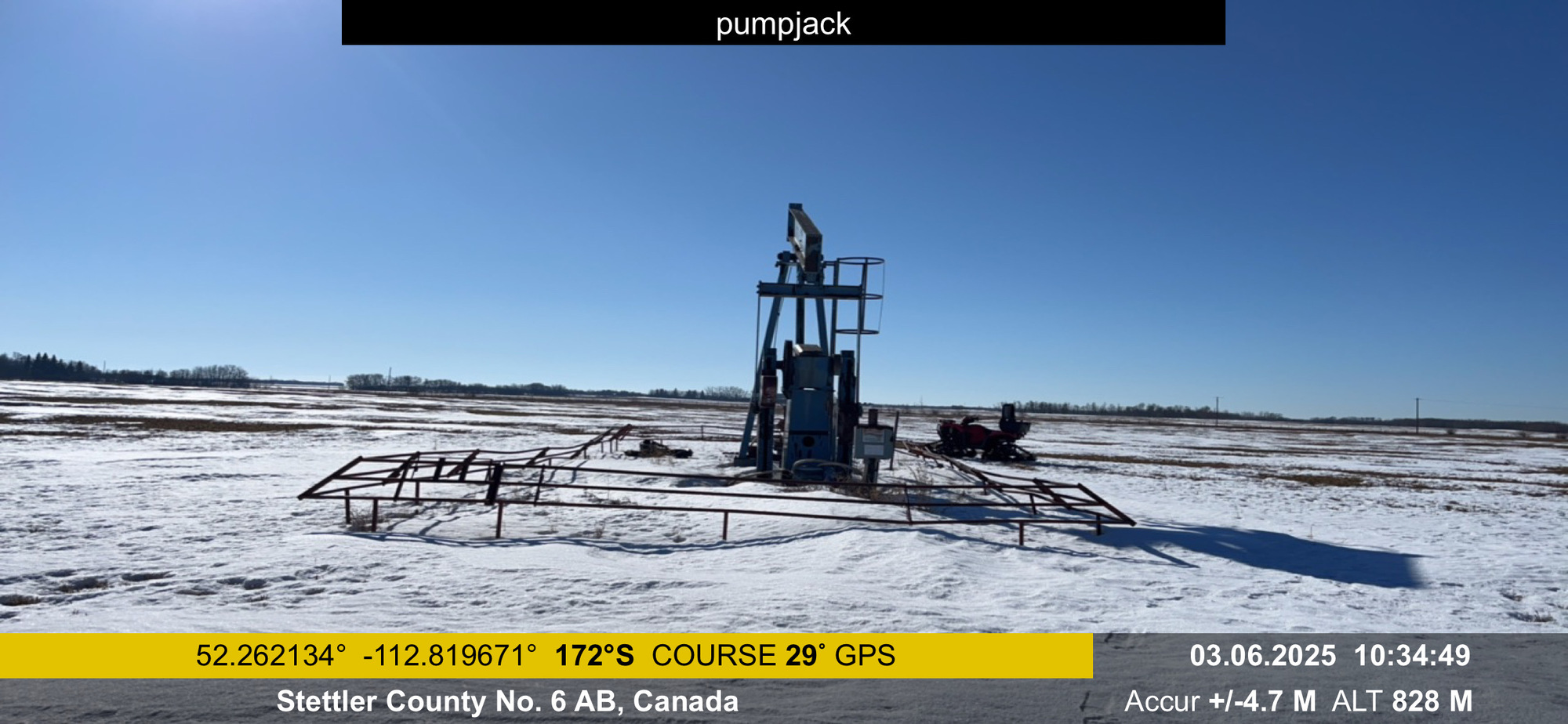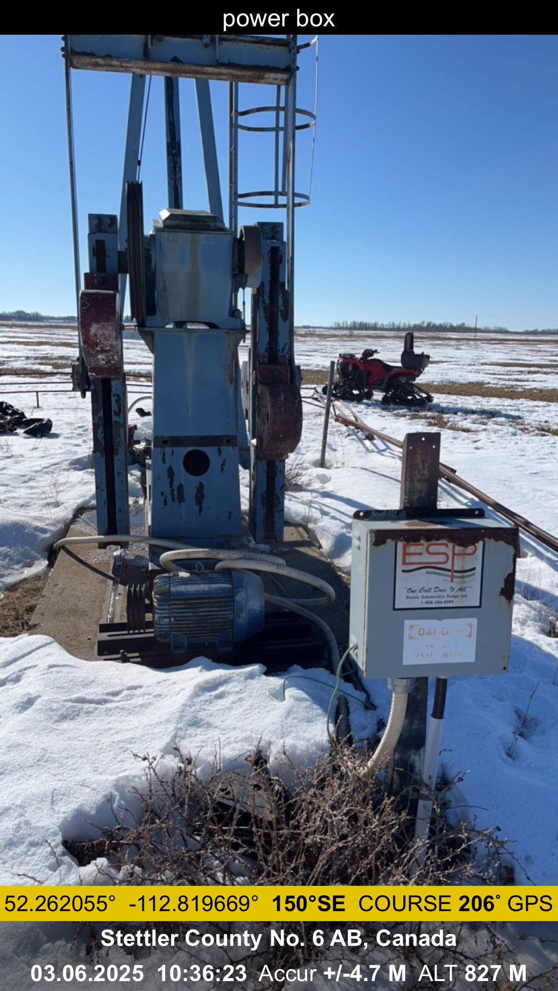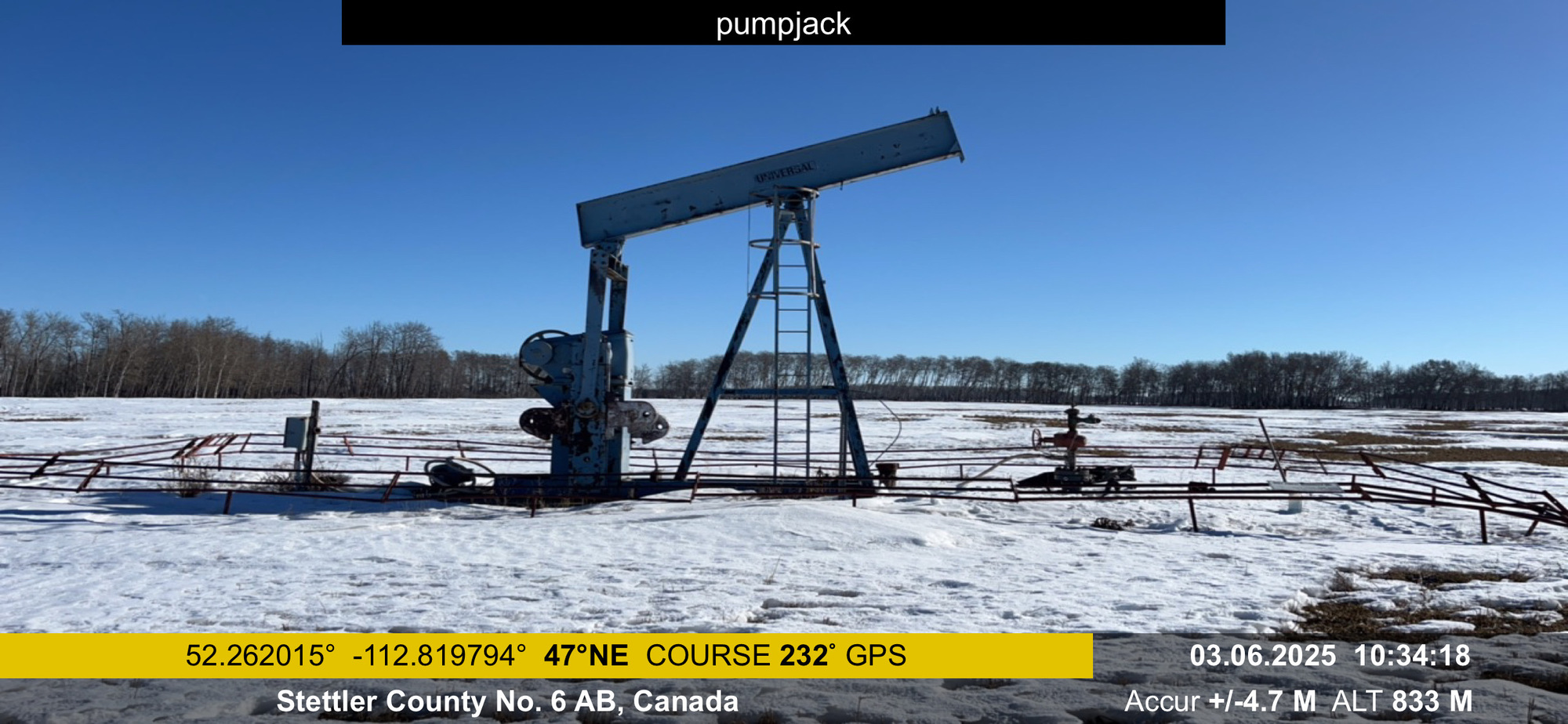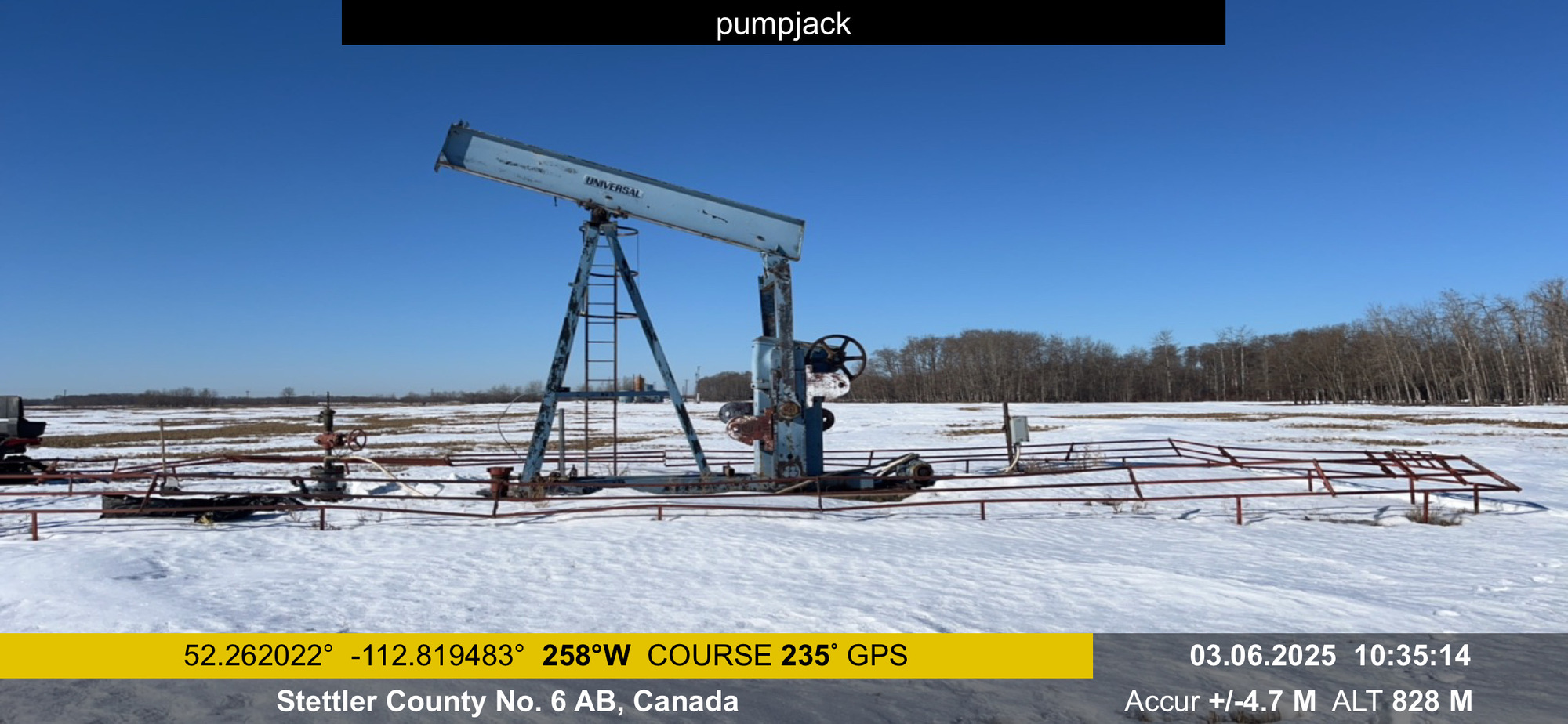 114D-173-64 Universal Industries Ltd. pumpjack with gear reducer and electric motor on 4’x12x cement pad located at 01-17-038-20W4 (100)