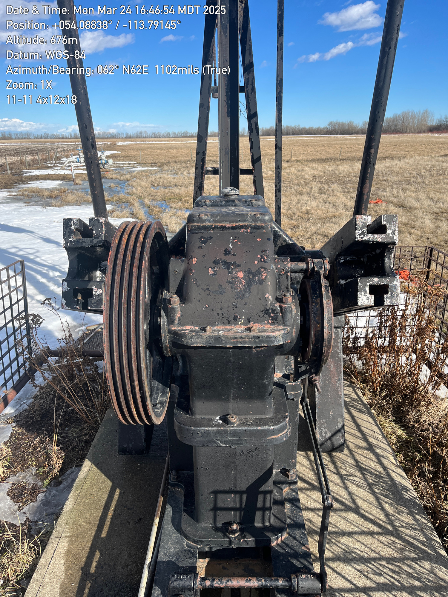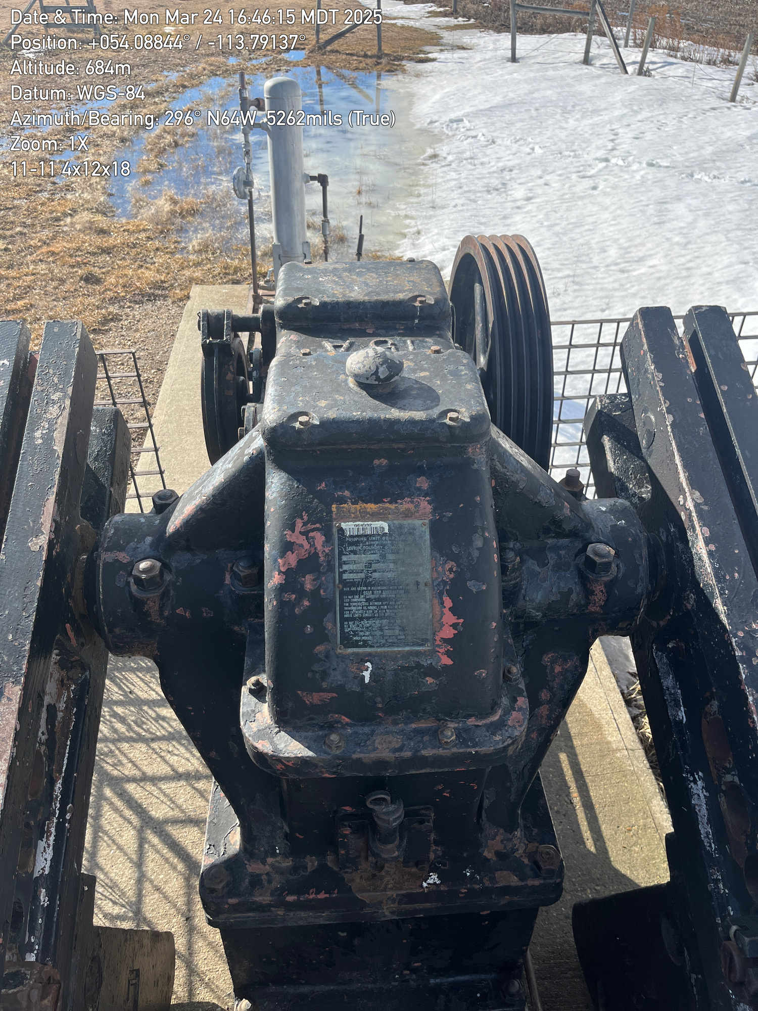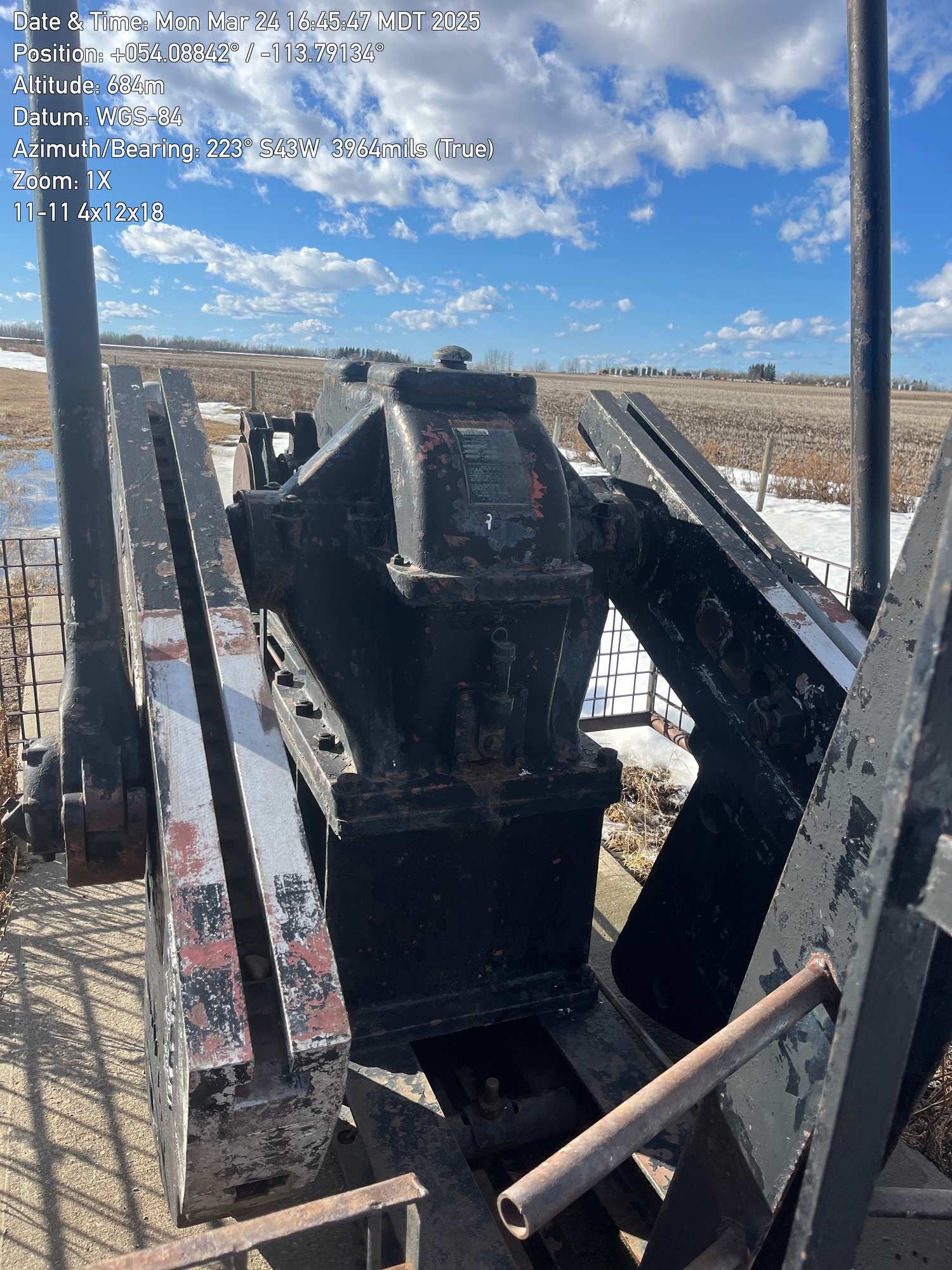 4'x12'x20’ Lufkin TC44 pumpjack with 29.4 gear reducer but engine missing located at 100/11-11-059-26W4