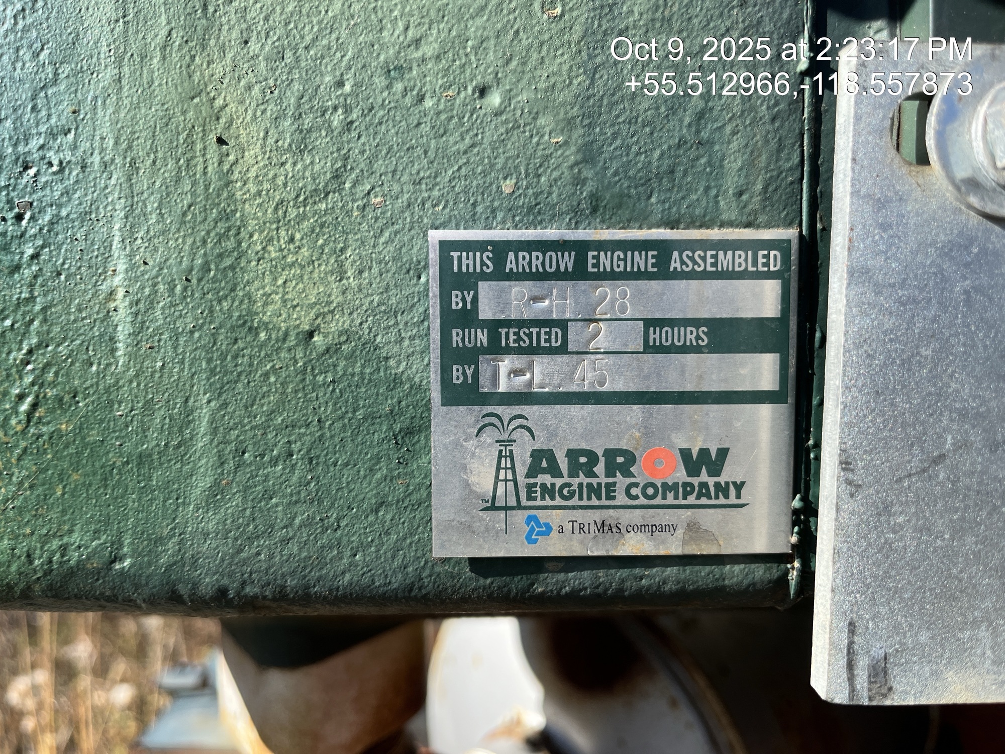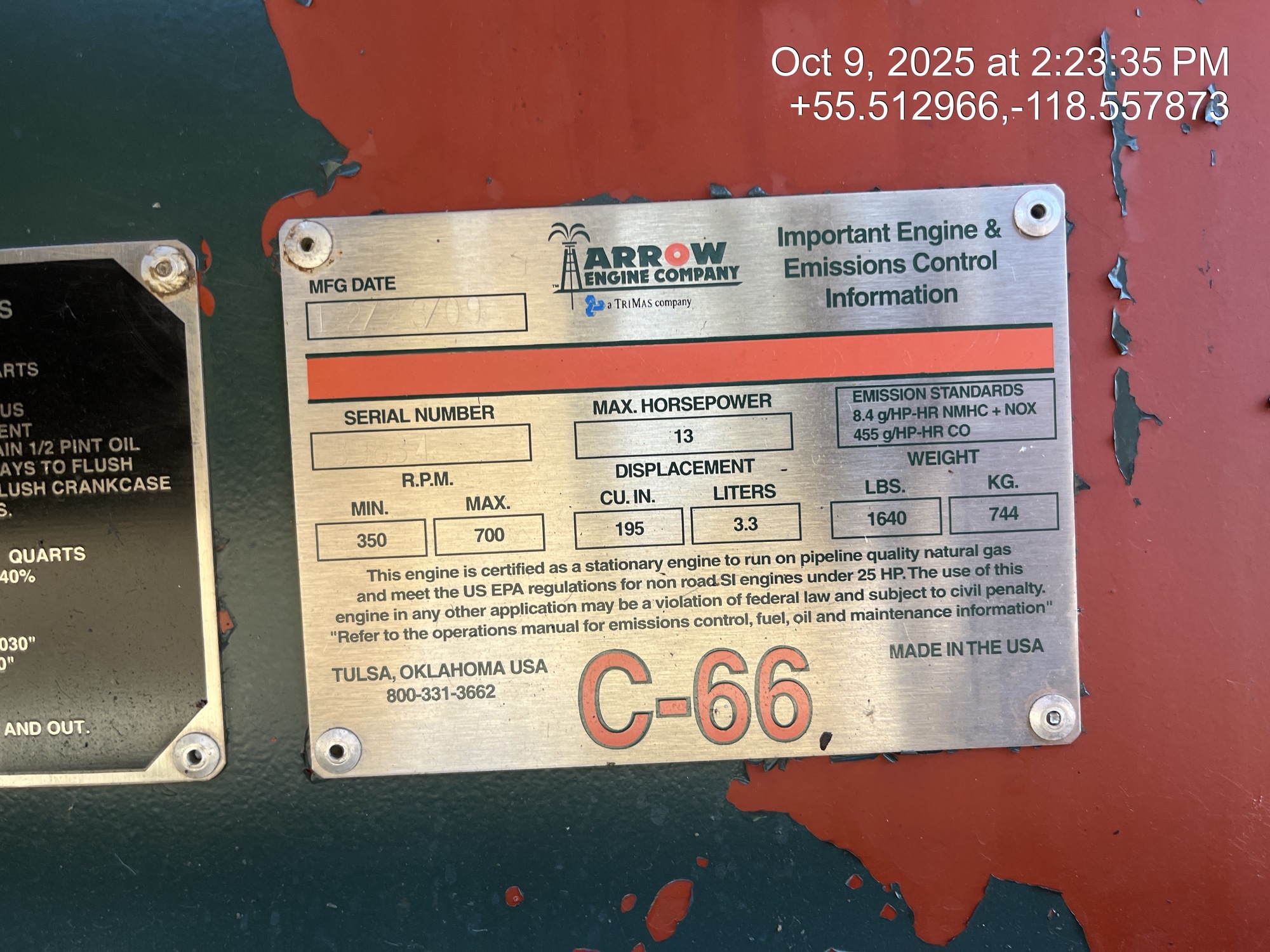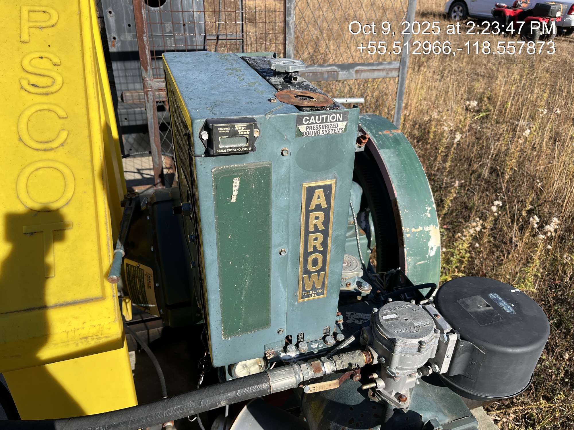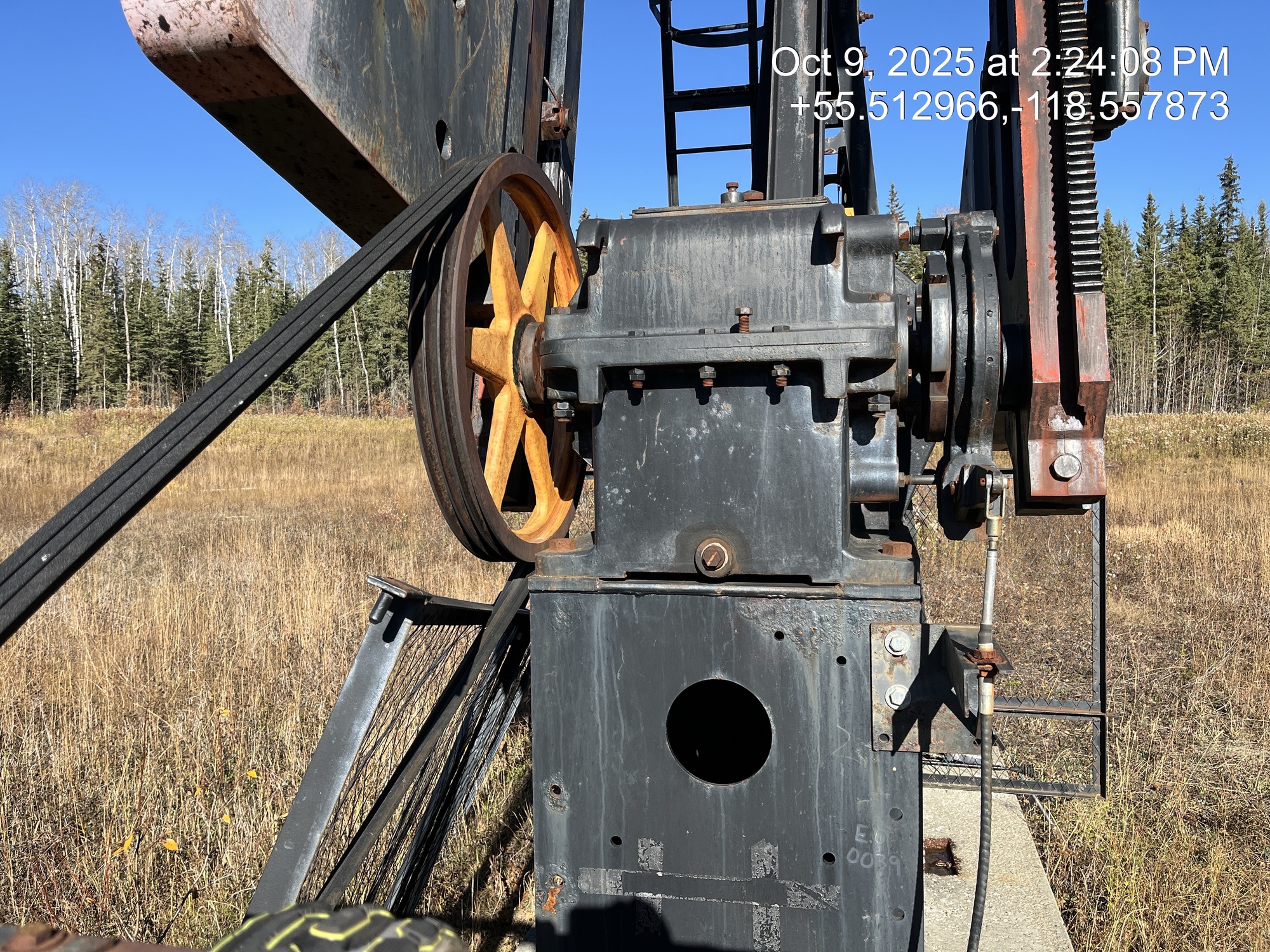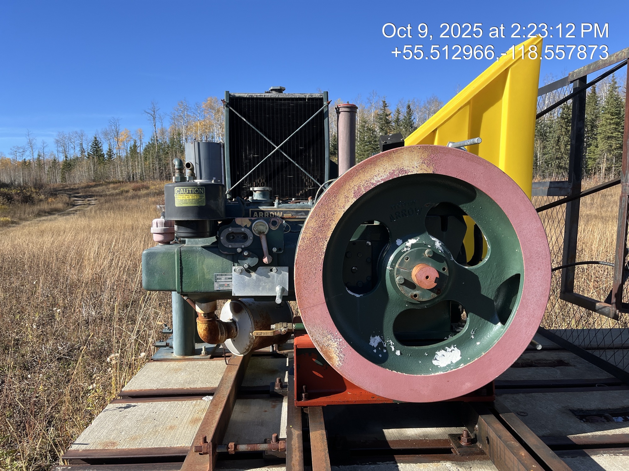 Weatherford 160-200-74 pumpjack built in 2008 with a 29.774 gear reducer and 13 HP Arrow C-66 engine on 6' x 26' cement pad on piles located at 11-21-075-04W6 (100/10-21 downhole)