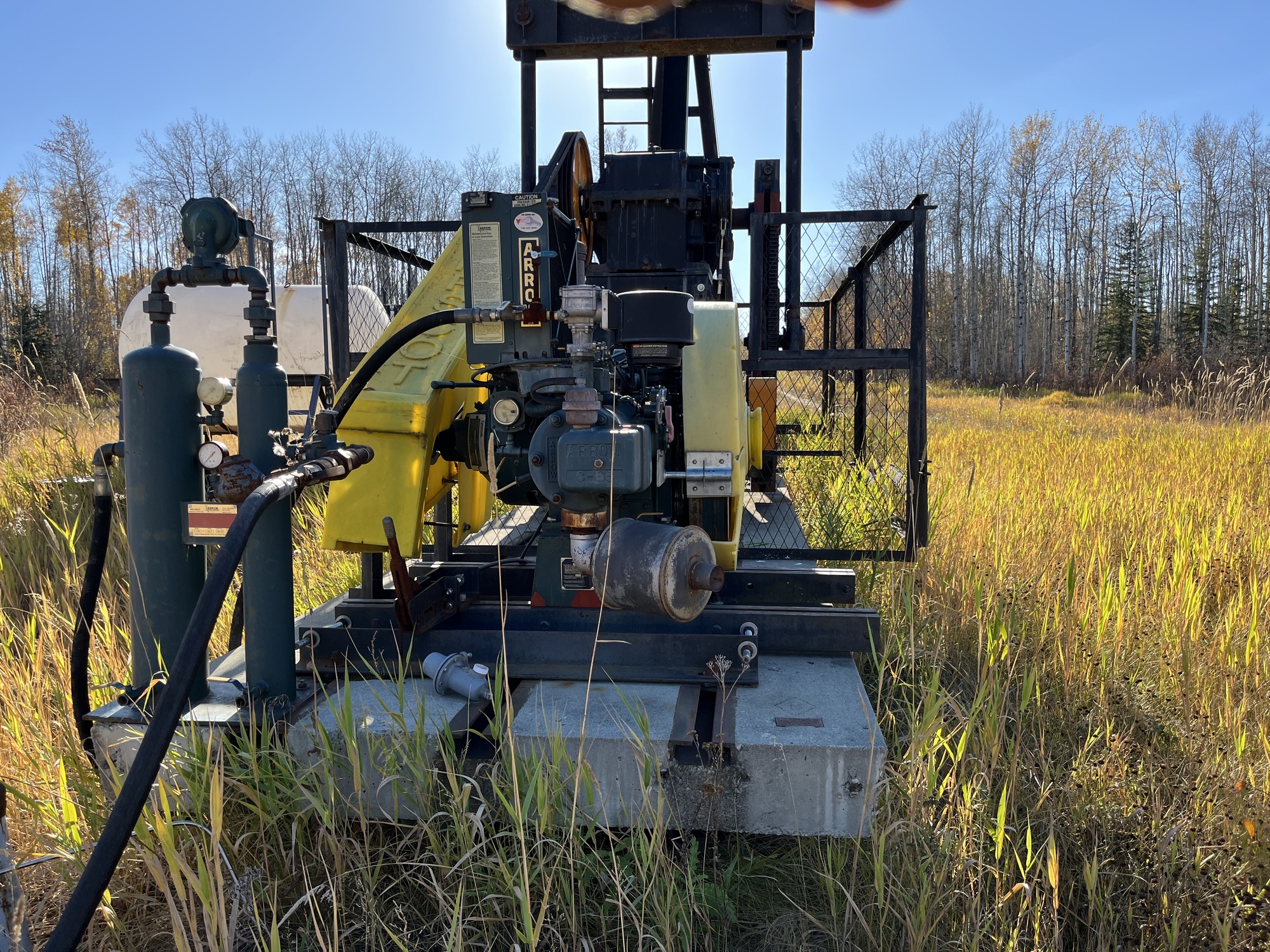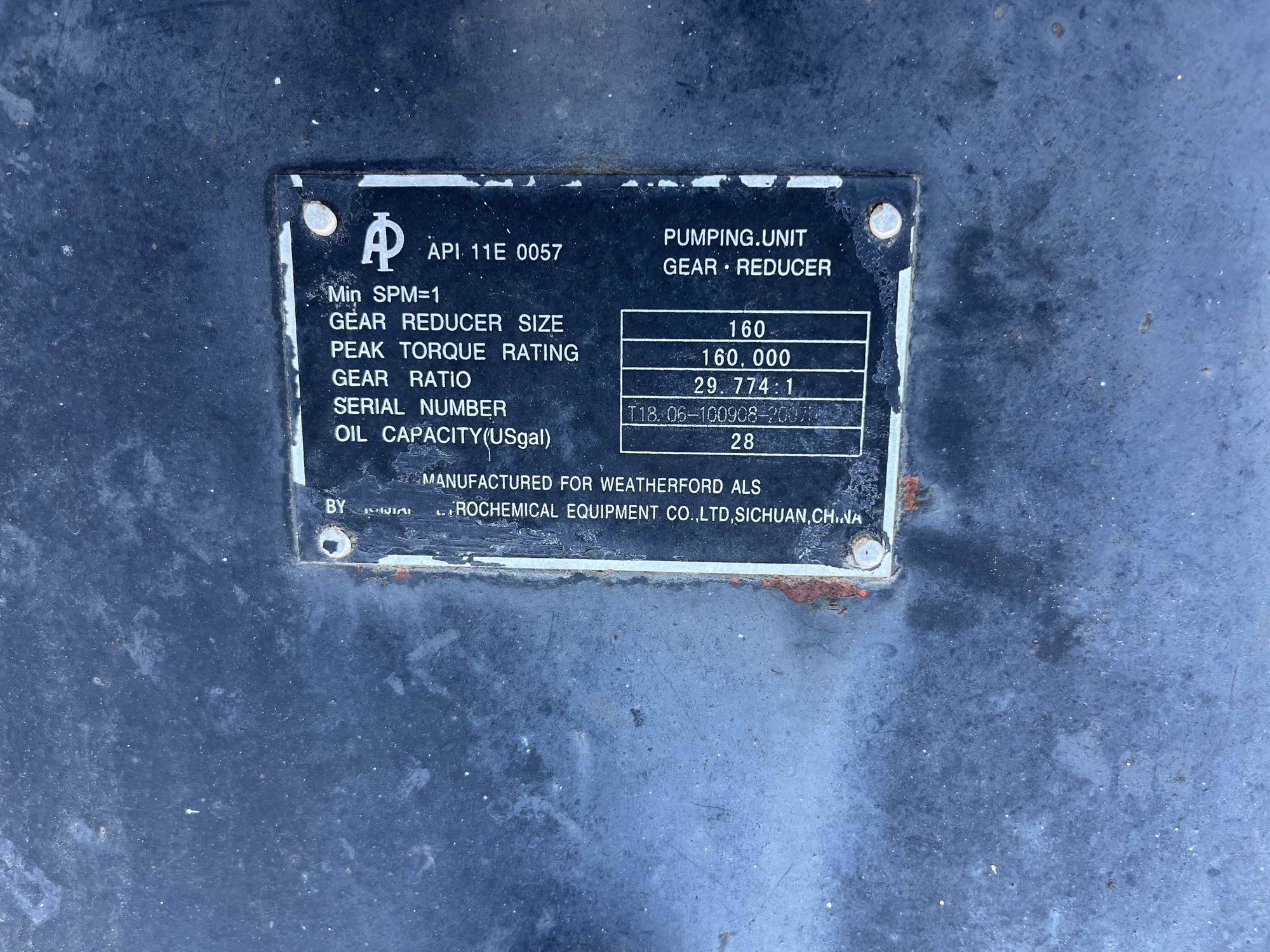 160-200-47 Weatherford pumpjack built in 2008 with a 29.774 gear reducer and a 13 HP Arrow C-66 engine located at 16-16-075-04W6 (100)