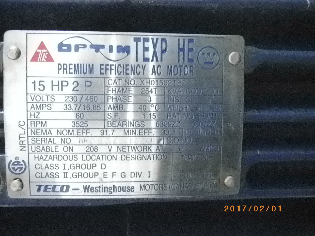 Voltage Rating 230/480V / 3 Ph / 60 Hz