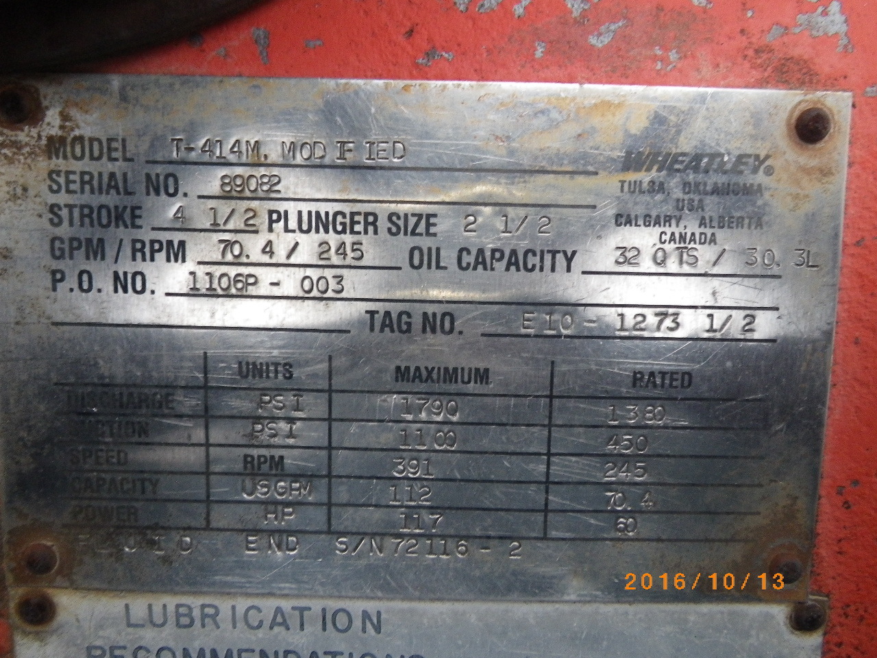 70.4 gpm, 245 RPM