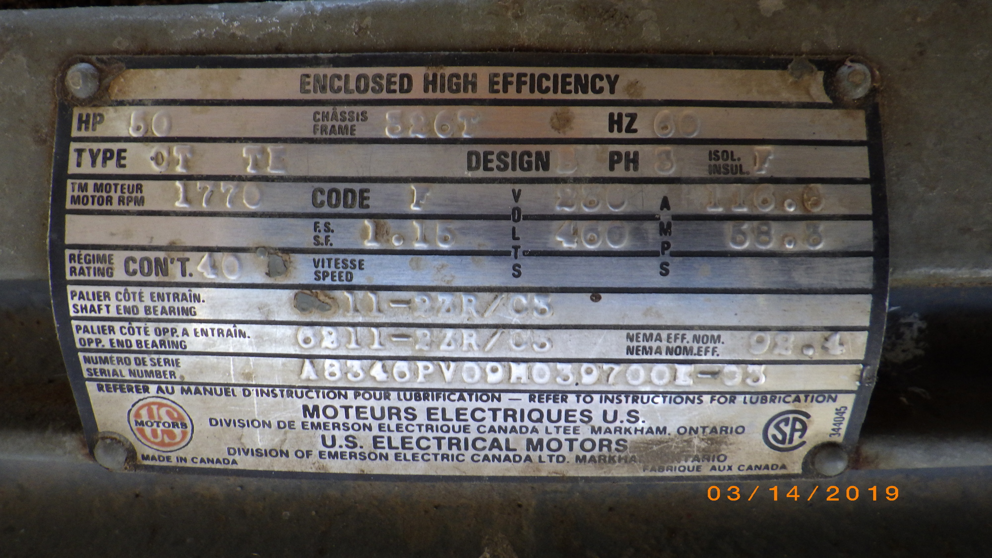 Voltage Rating 230/480V / 3 Ph / 60 Hz
