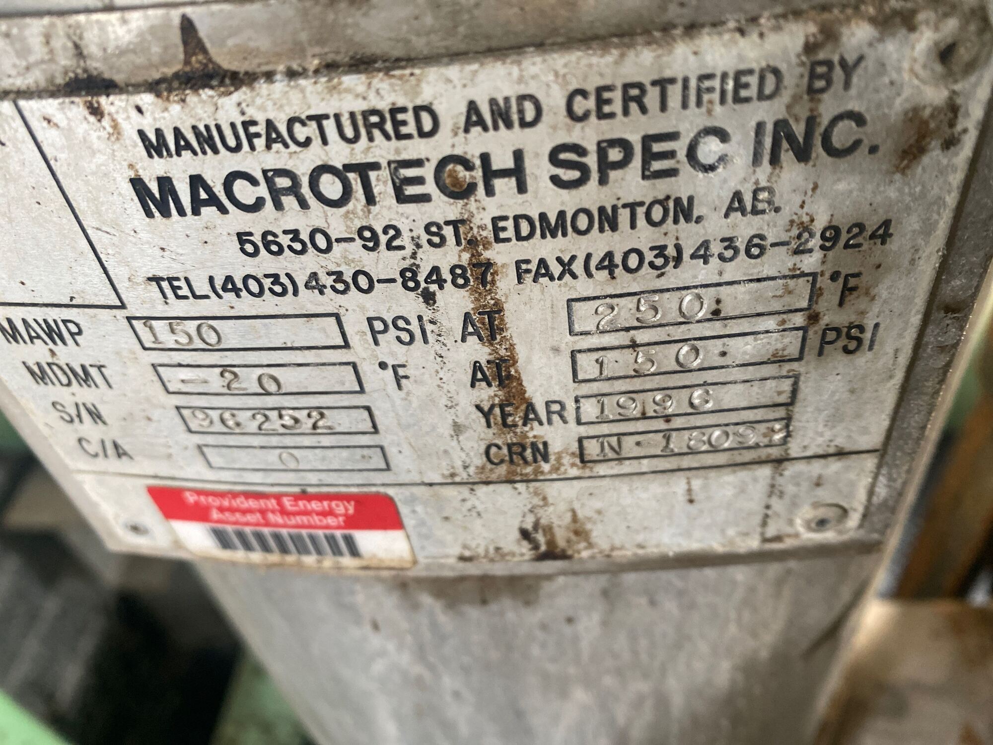 MAWP: 150 PSI @ 250°F