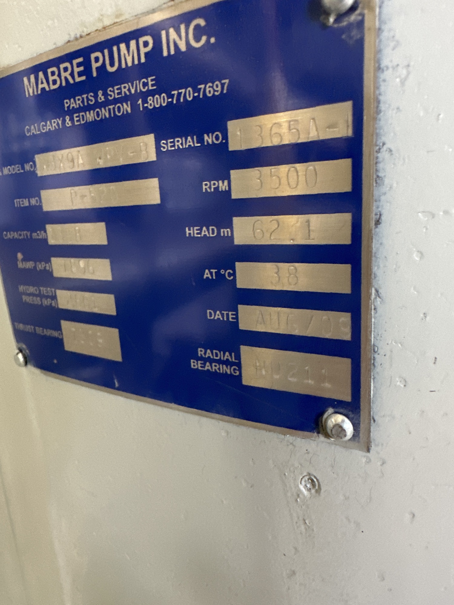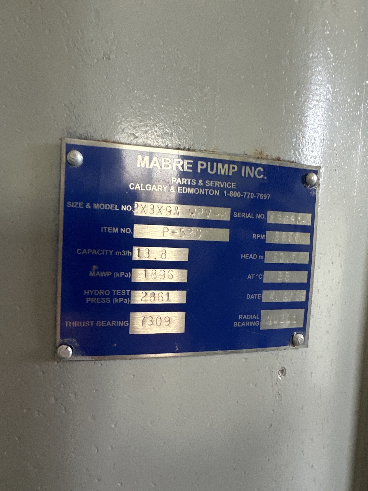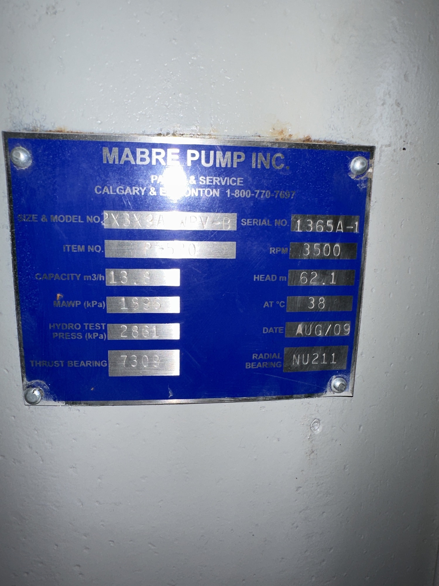 Pump P-880 Motor Tag*