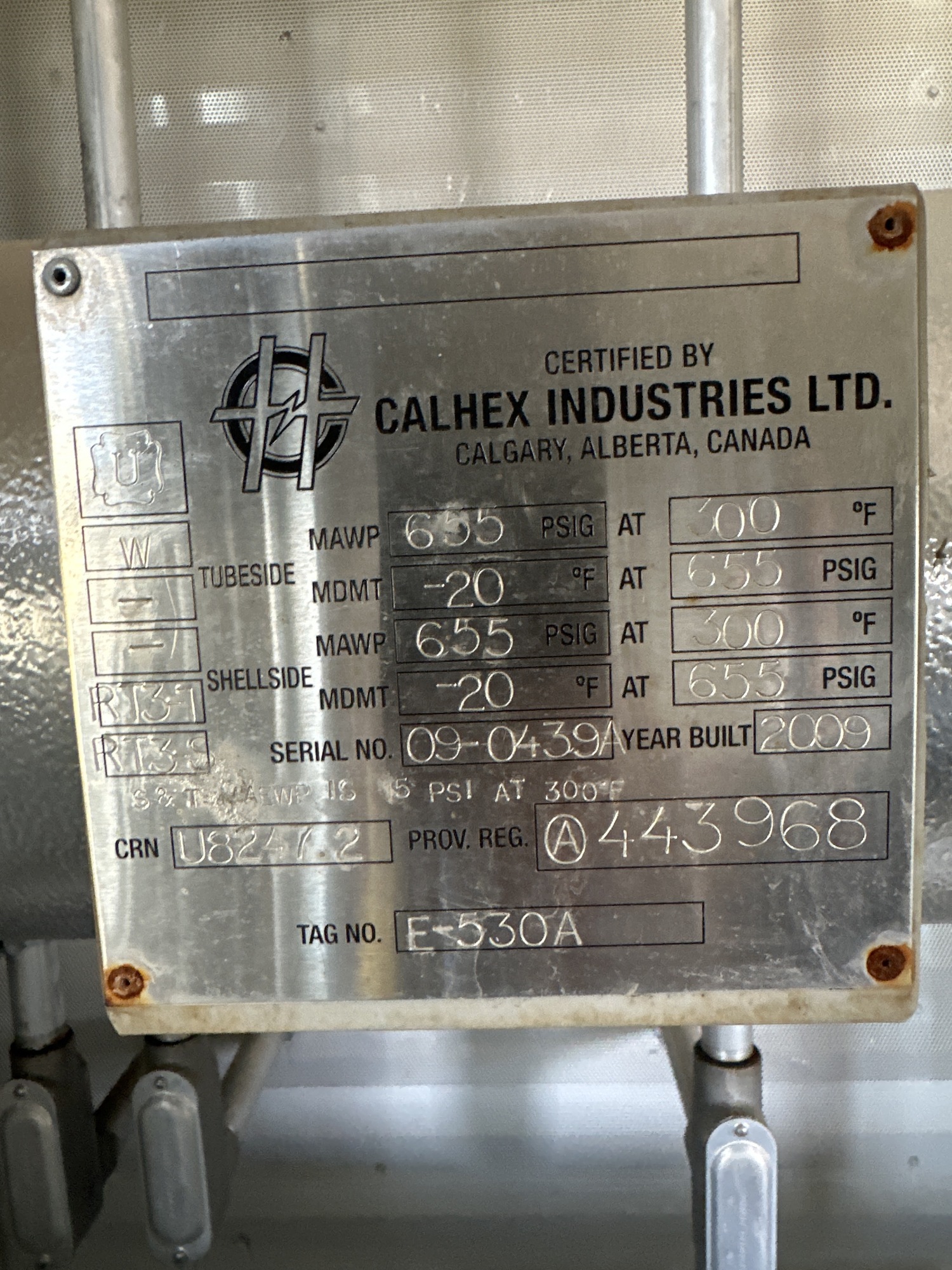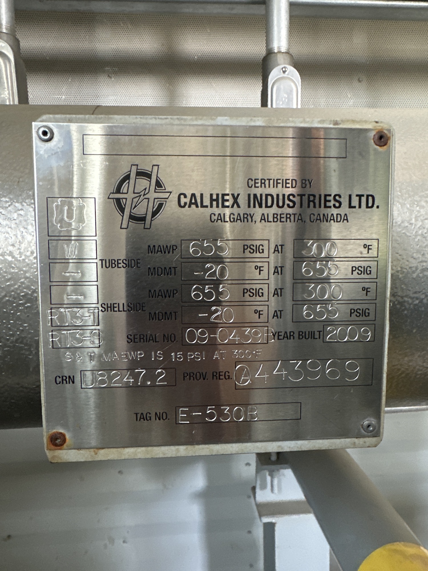 Shellside MAWP: 655 PSIG at 300 F