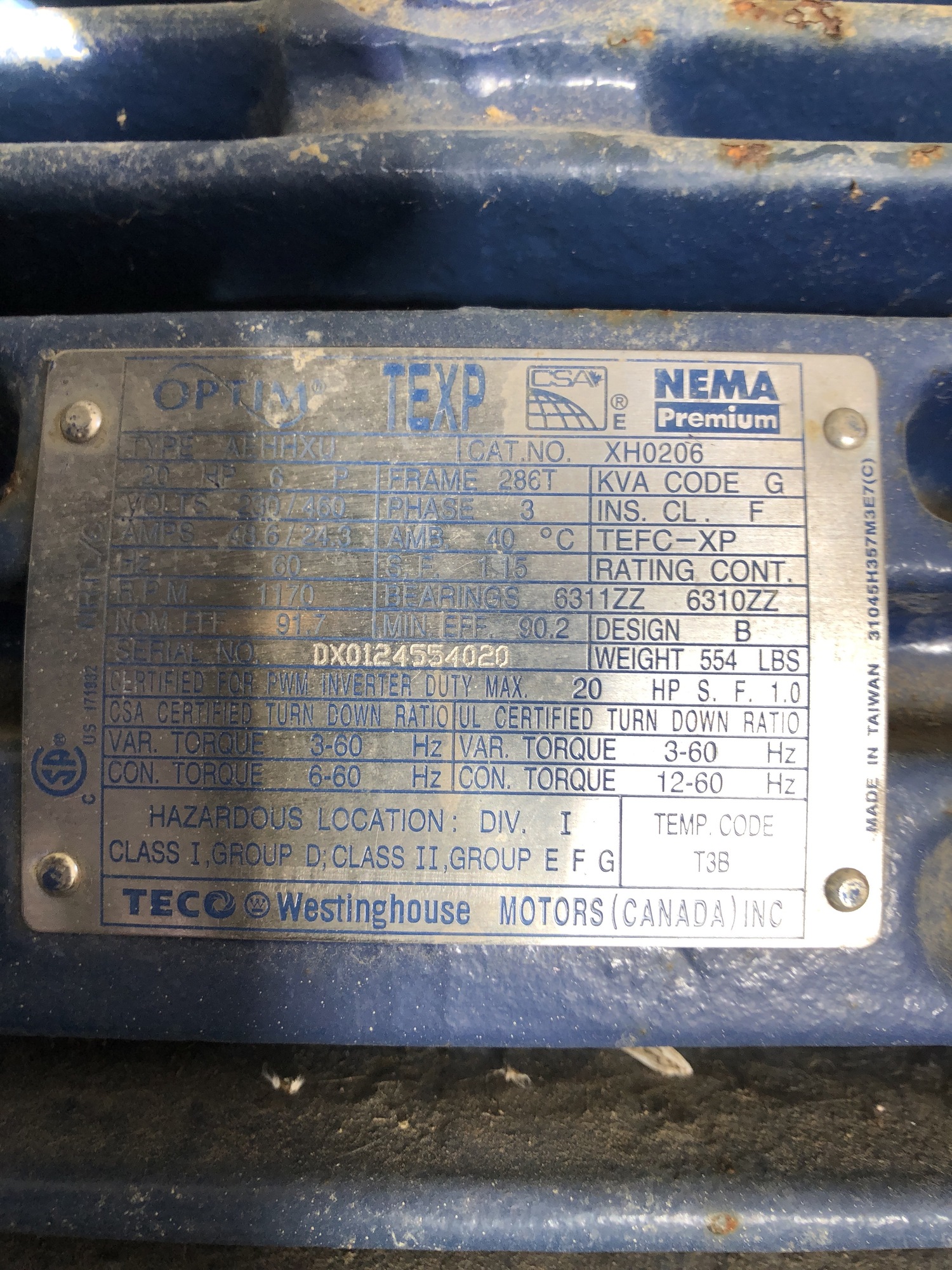 Voltage Rating 230/480V / 3 Ph / 60 Hz