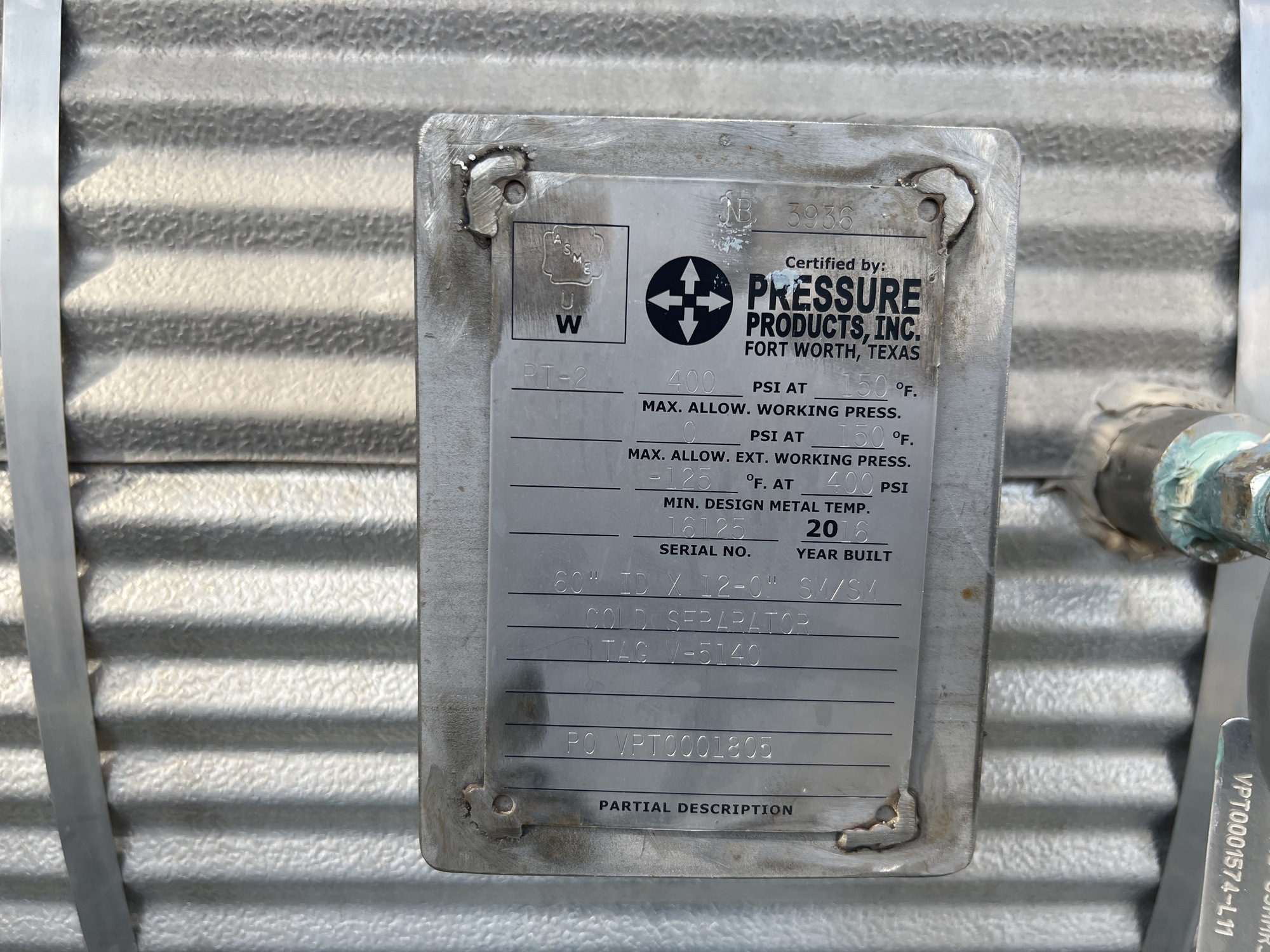 MAWP: 400 PSI @ 150 F