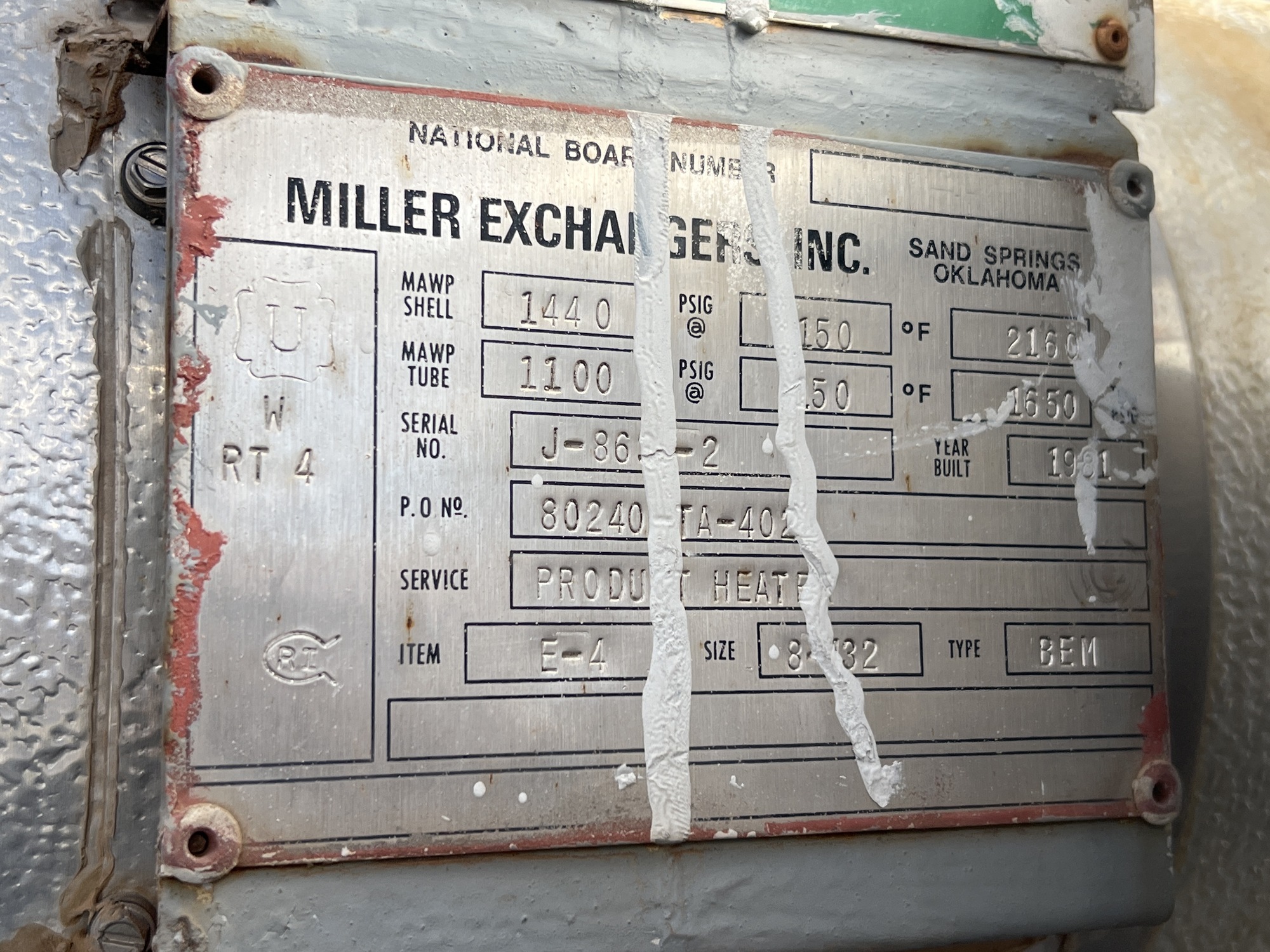 MAWP Shell: 1440 PSIG at 150 F