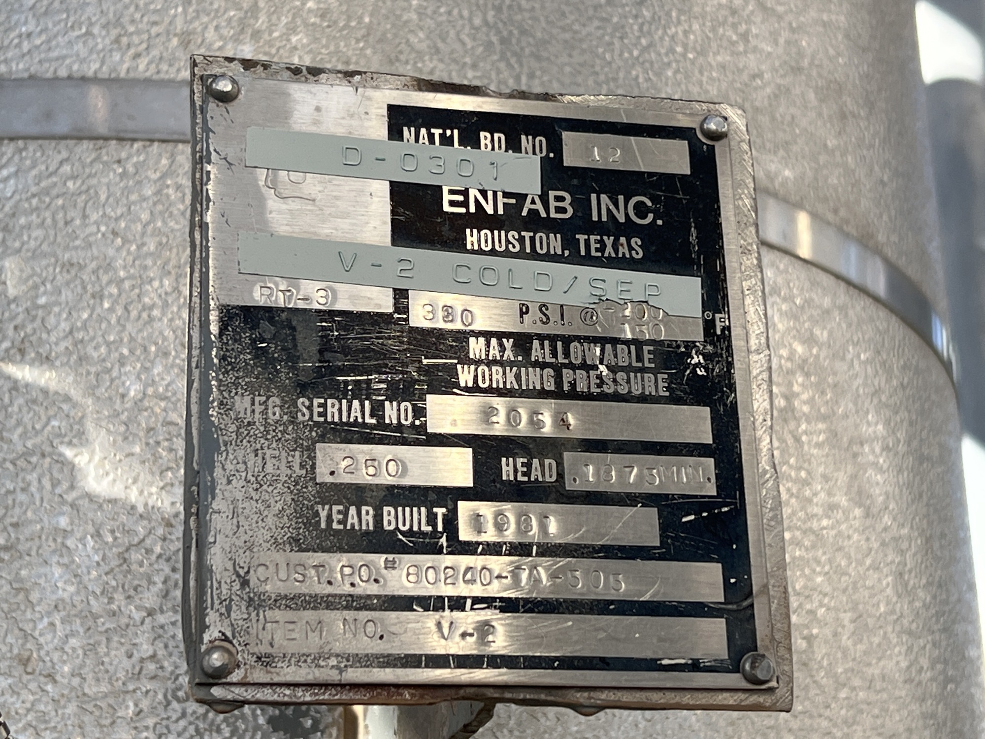 MAWP: 330 PSI at -200/150 F