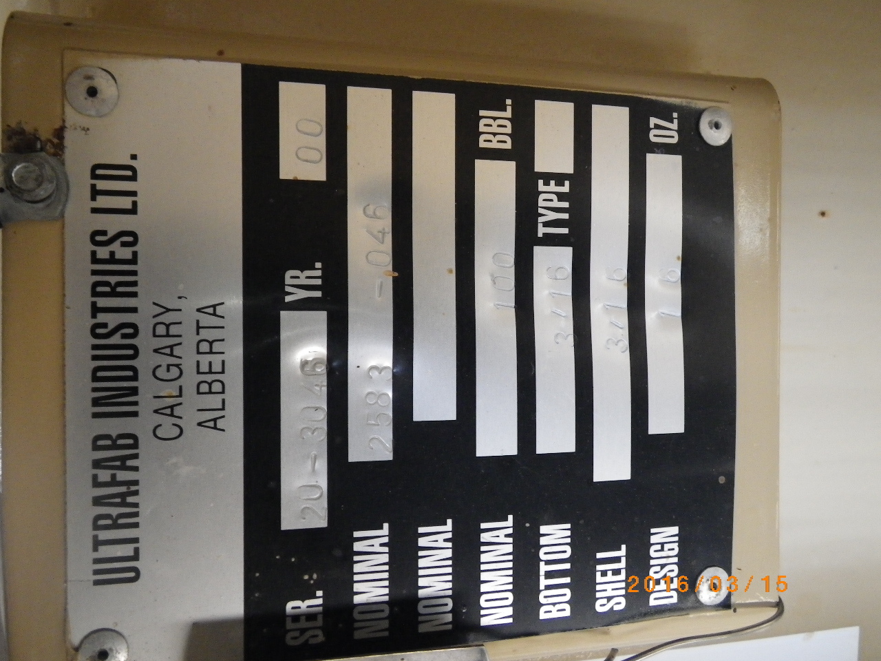/W 100 BBL TANK