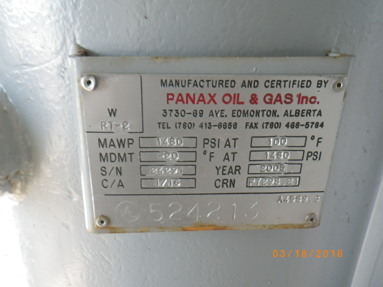 MAWP (PSI) 1480