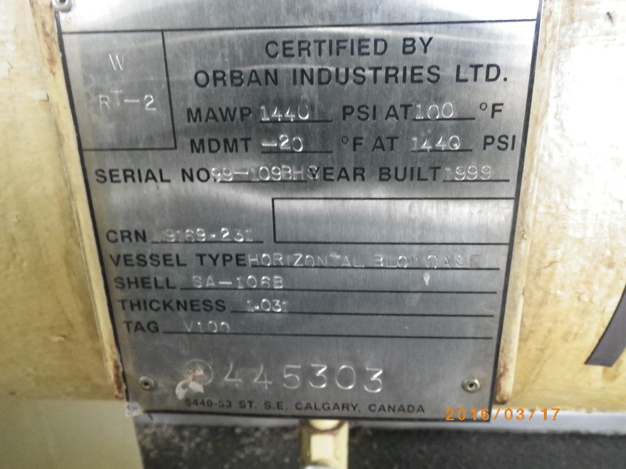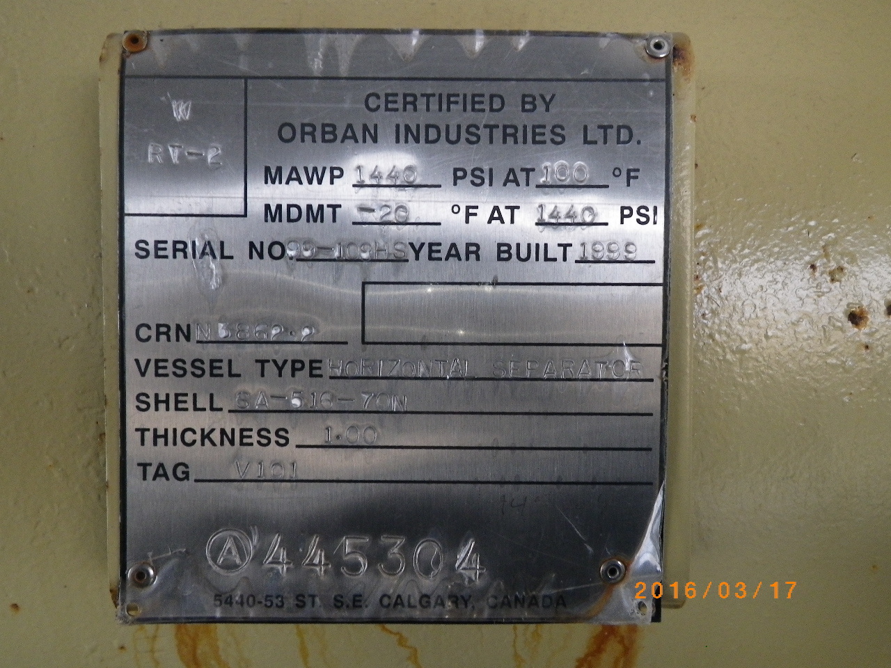 MAWP (PSI) 1440