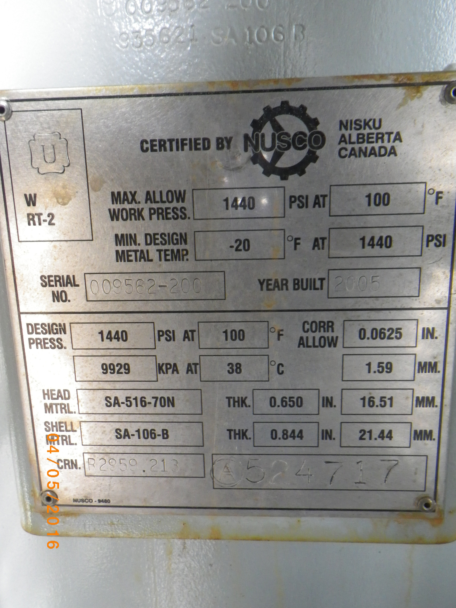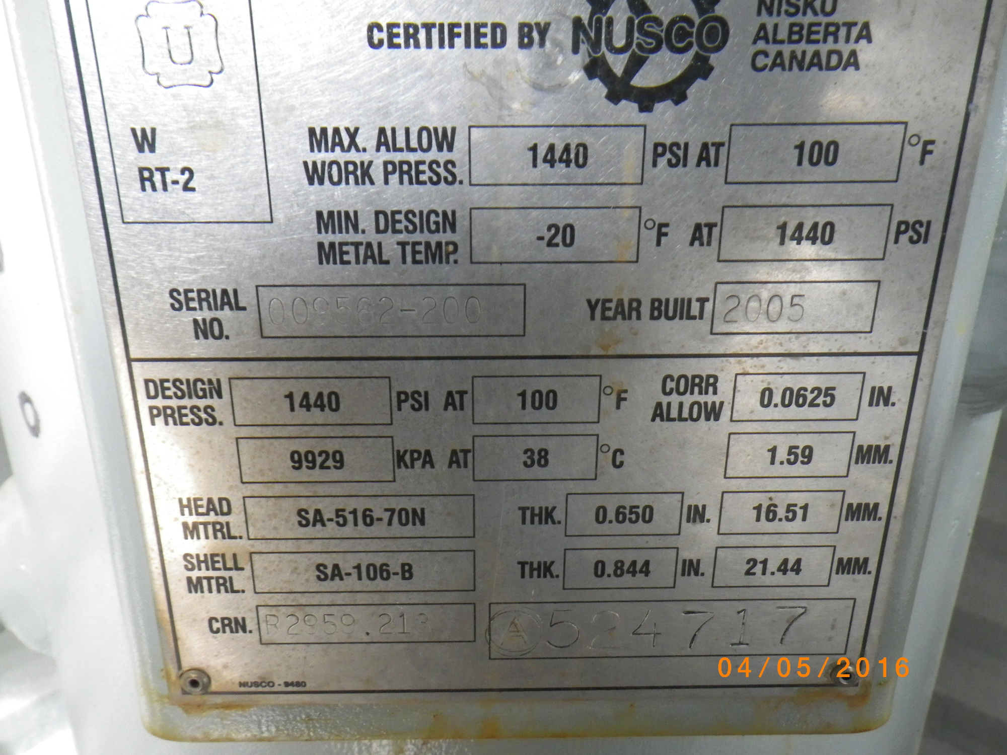 MAWP (PSI) 1440