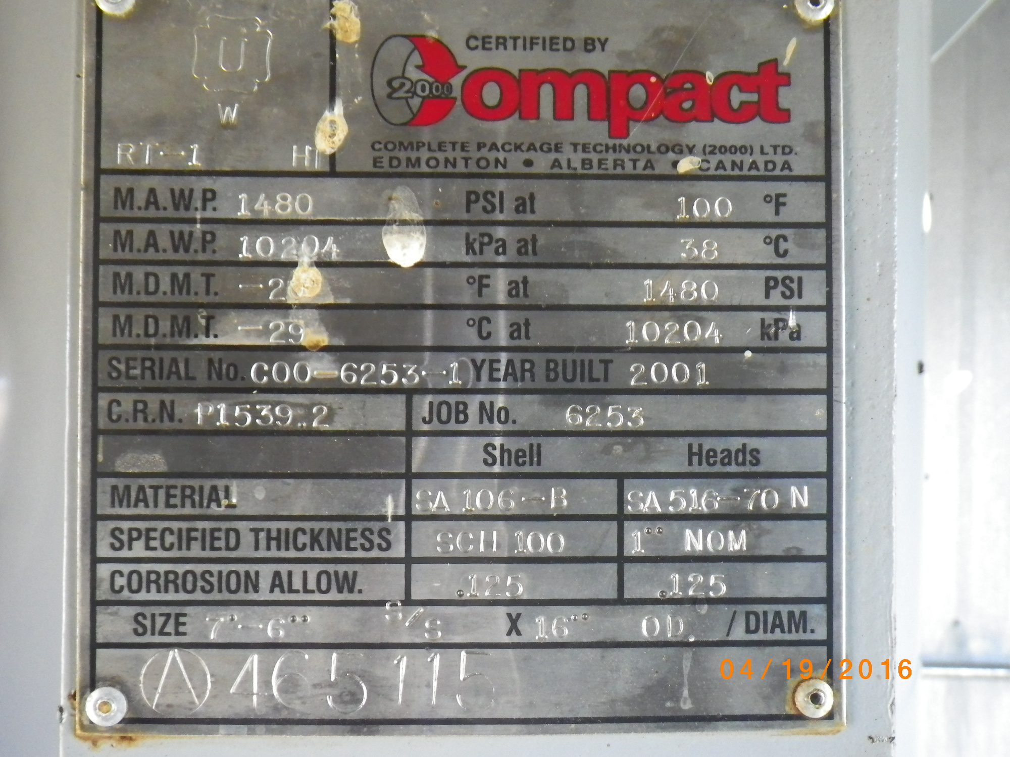 MAWP (PSI) 1480