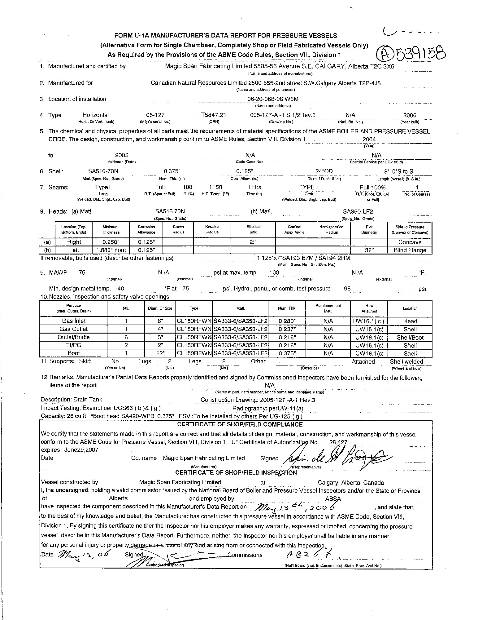 MAWP (PSI) 75
