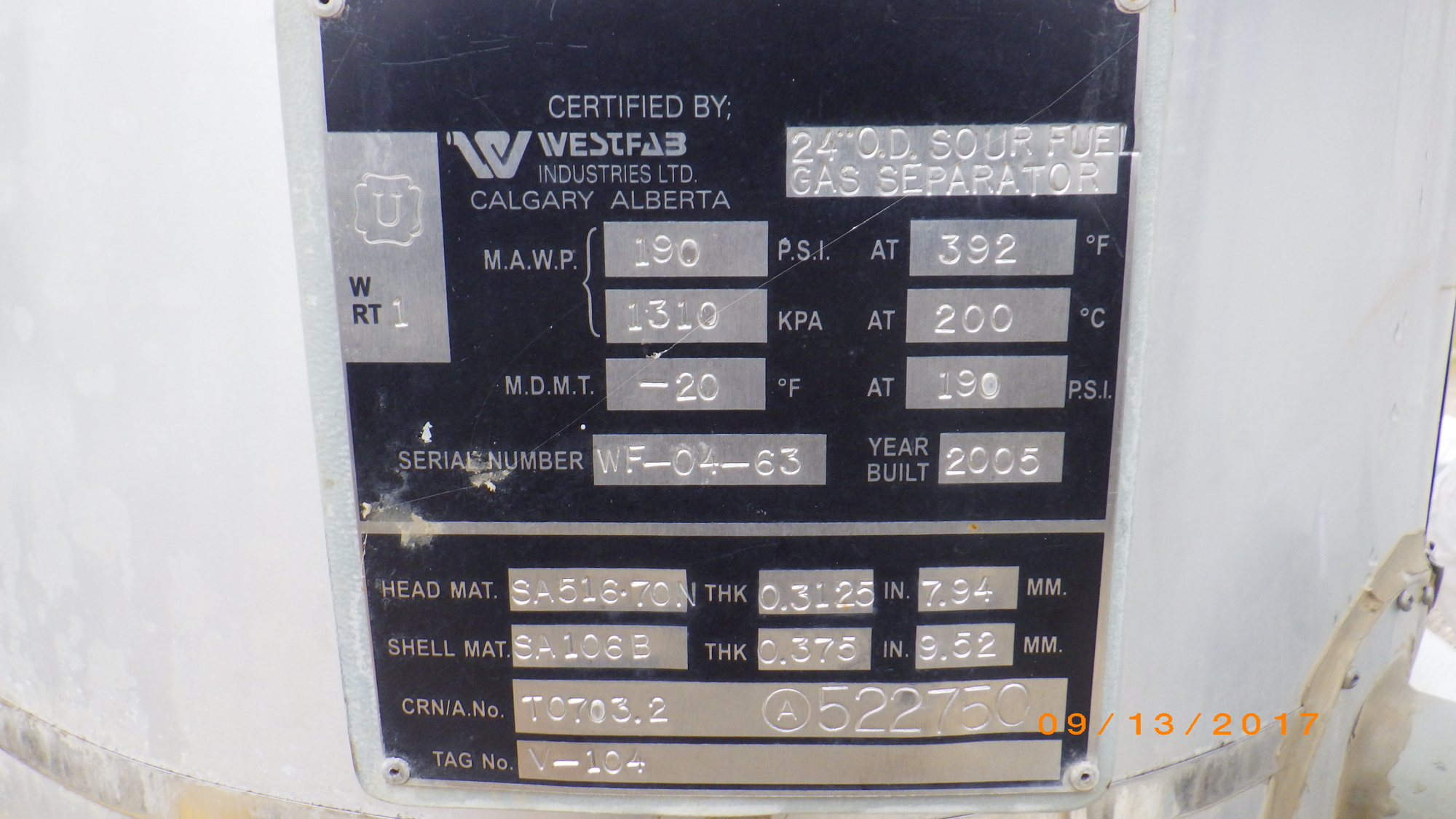 MAWP (PSI) 190