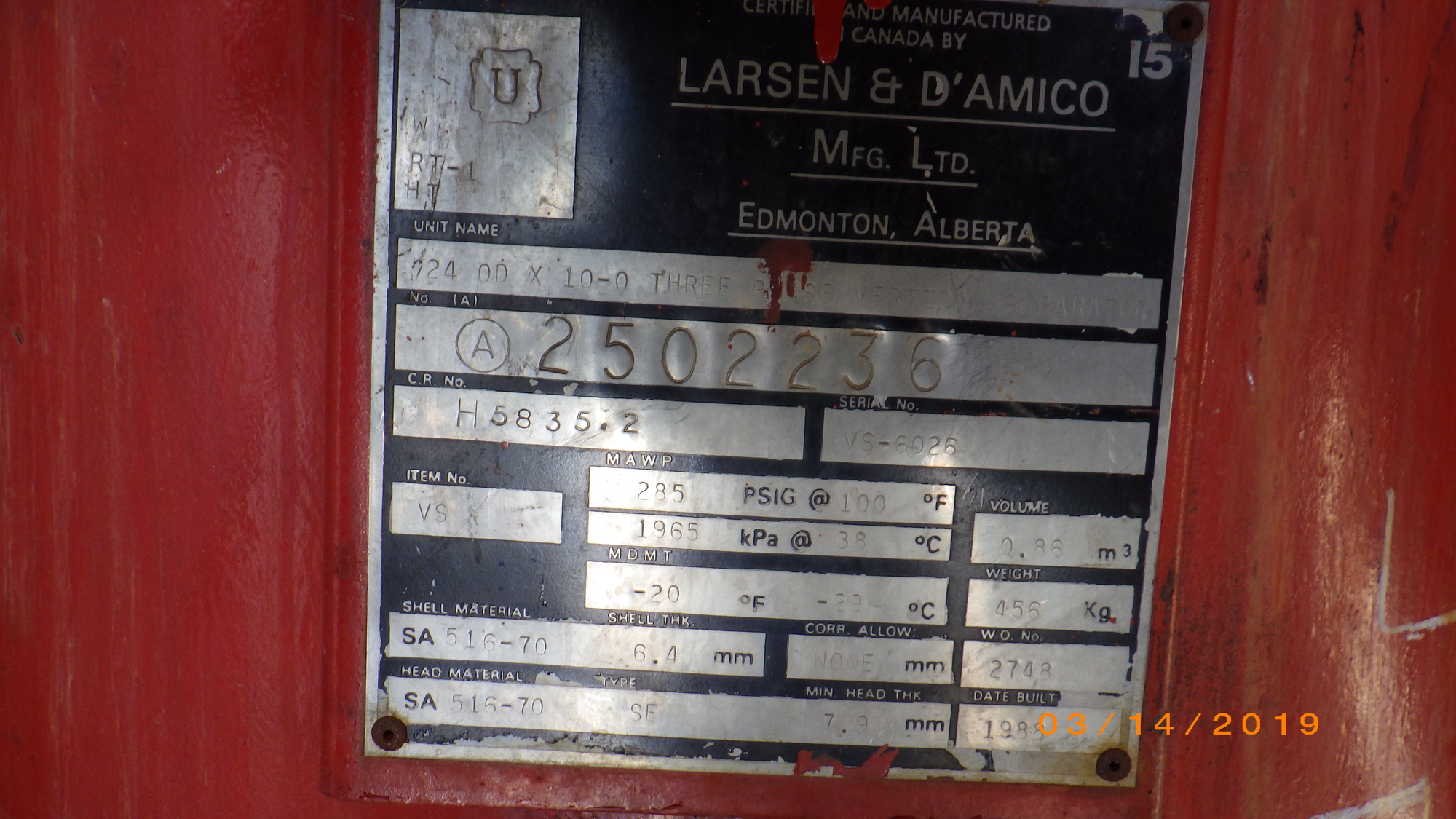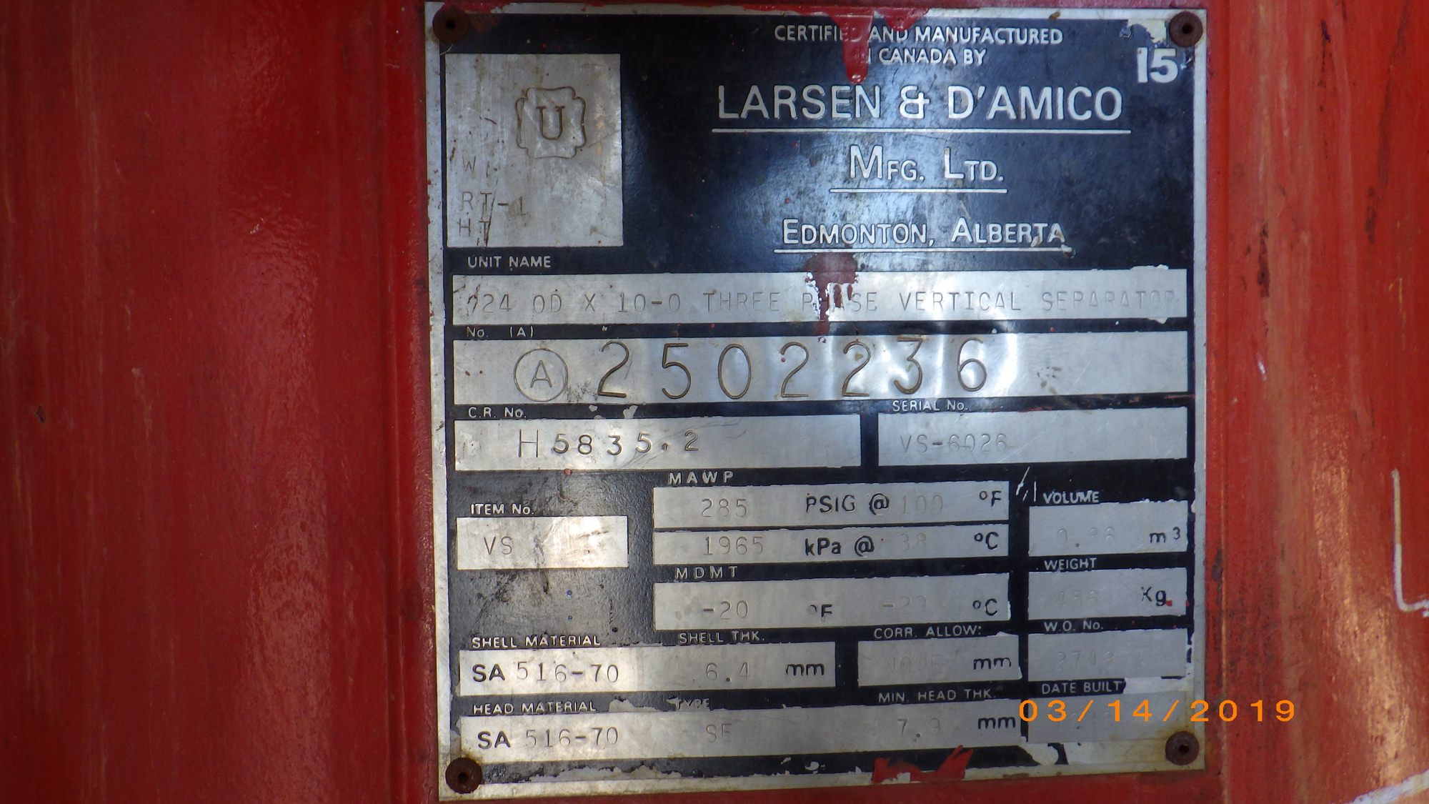 MAWP (PSI) 285