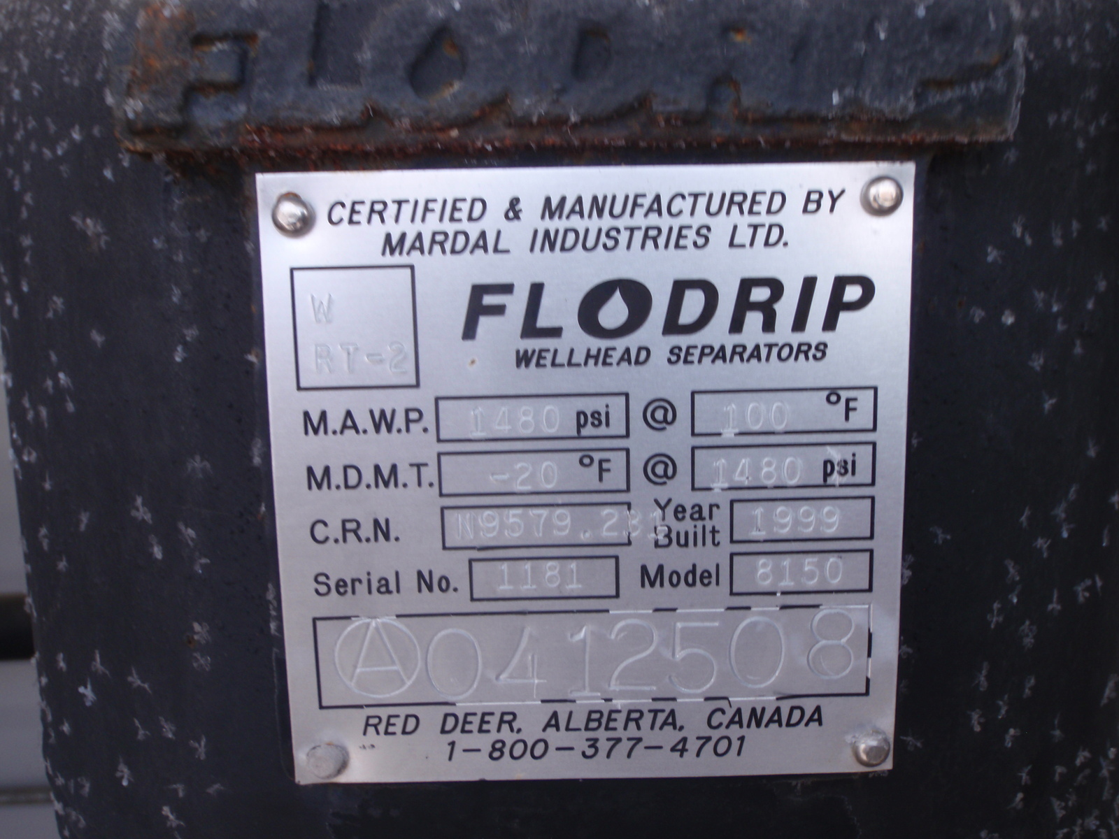 Description: 8" X 14" FLO DRIP SUITCASE SEPARATOR, 1480 PSI, BUILT 1999