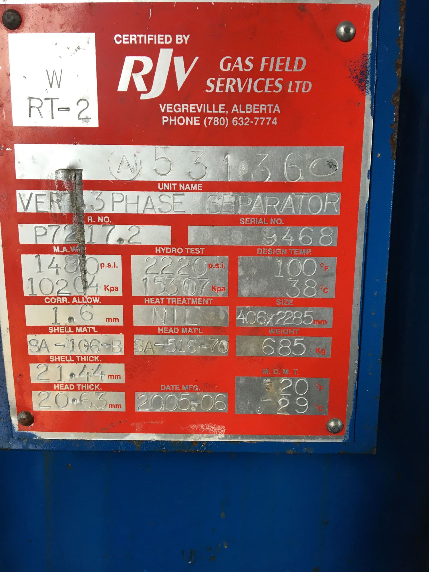 MAWP (PSI) 1480