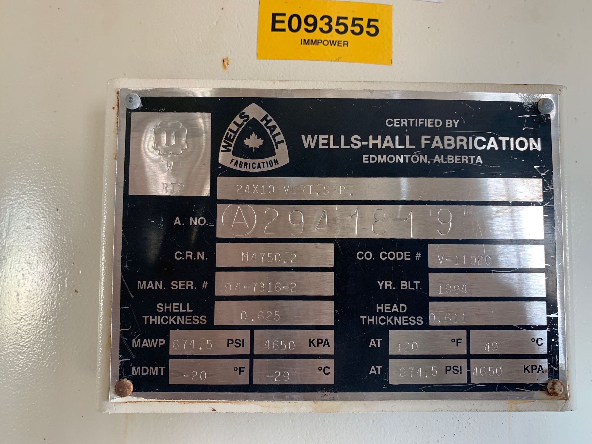 MAWP (PSI) 675