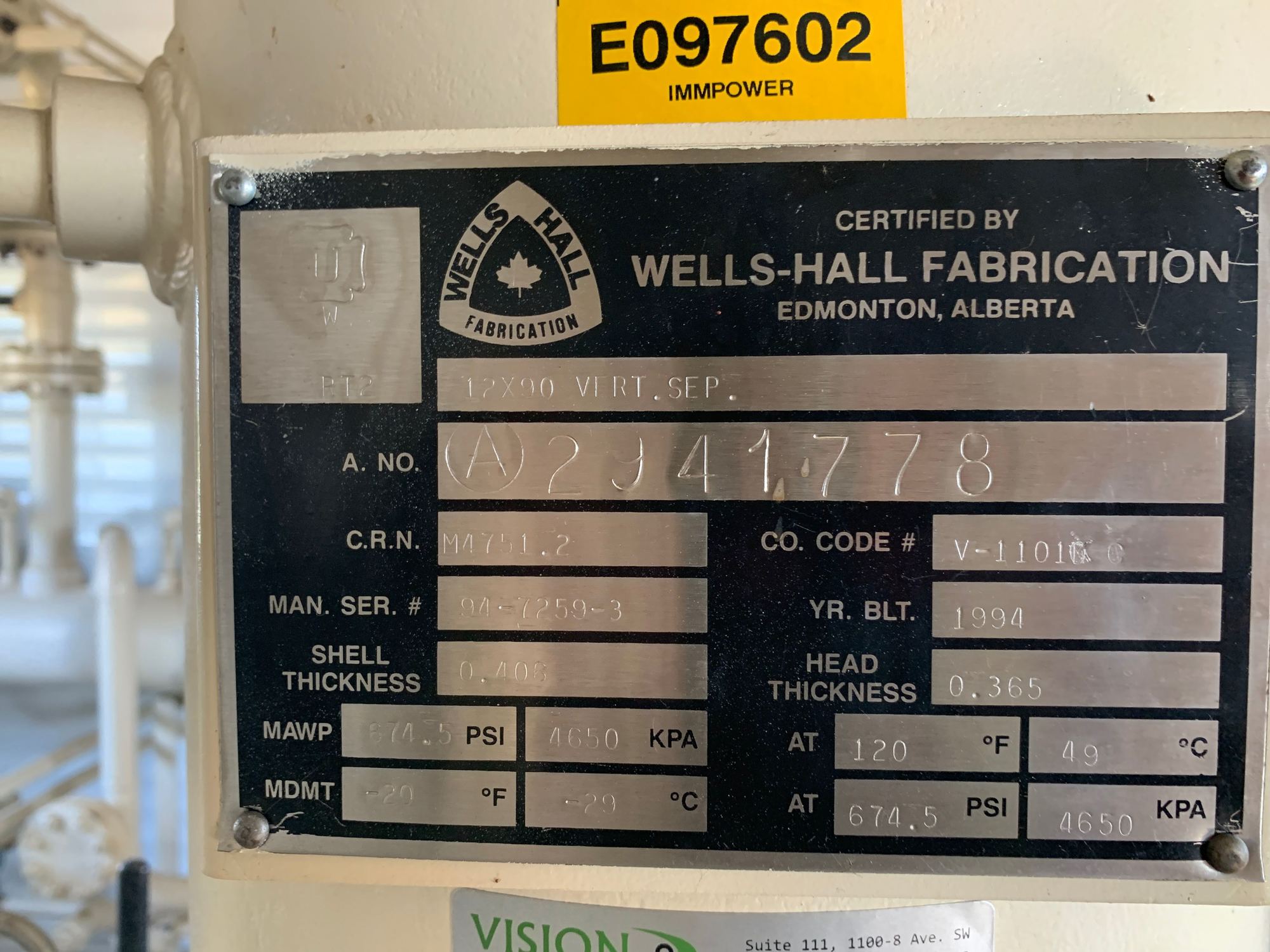 24" x 10' 675 PSI Multi Well Vertical Separator