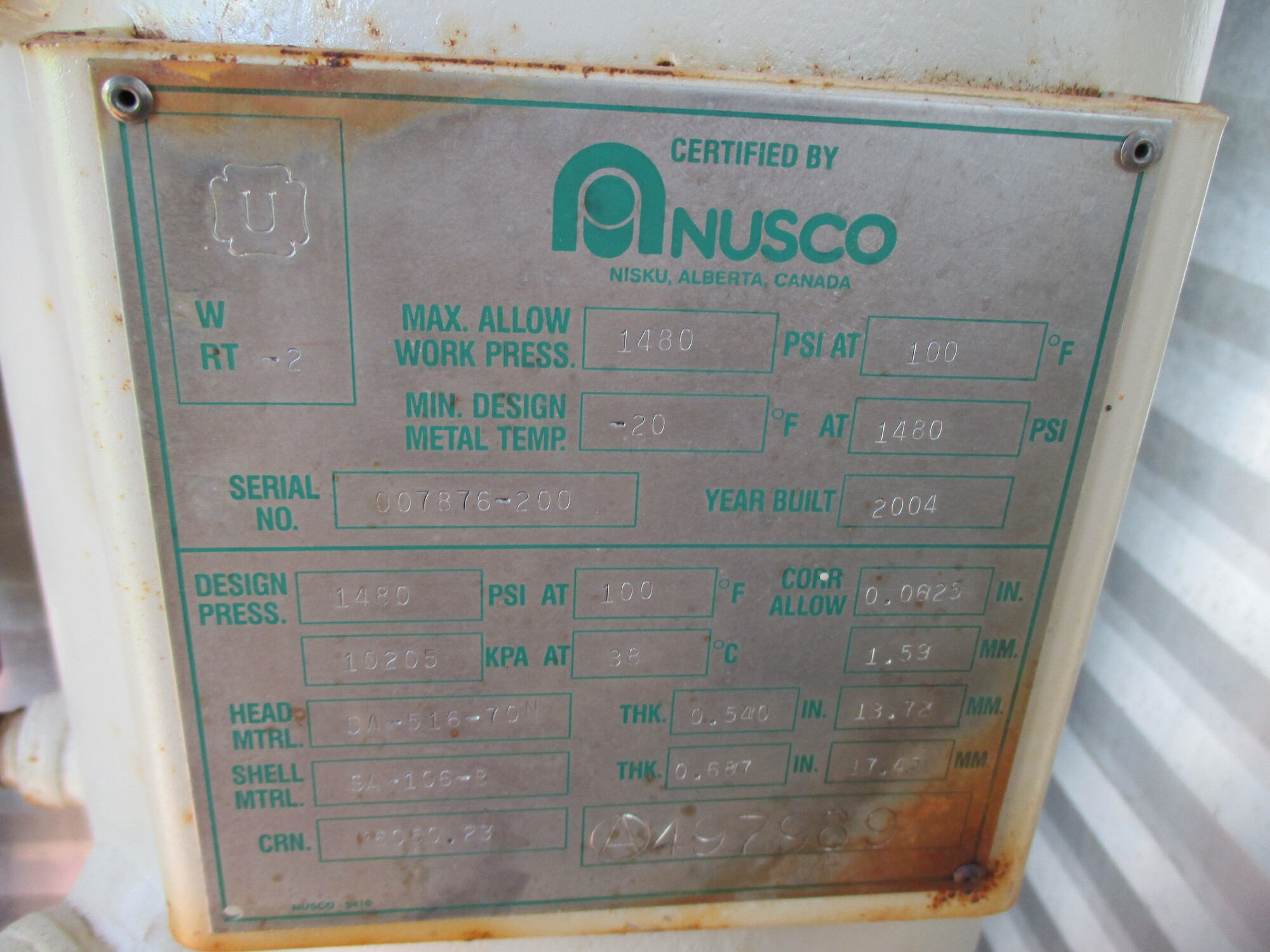 MAWP (PSI) 1480