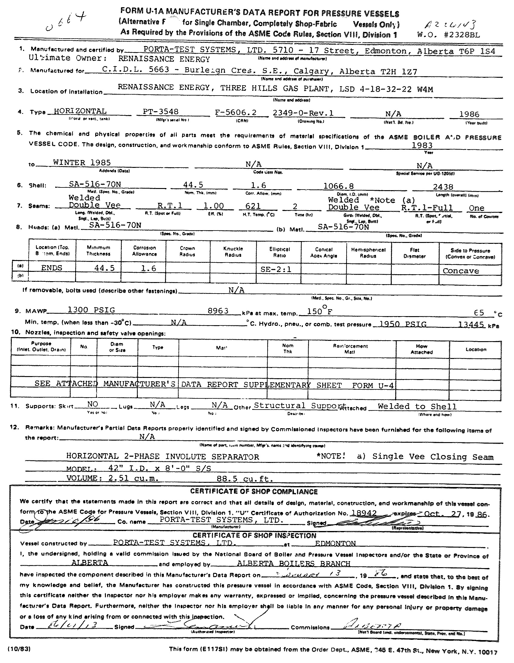 MAWP (PSI) 1300