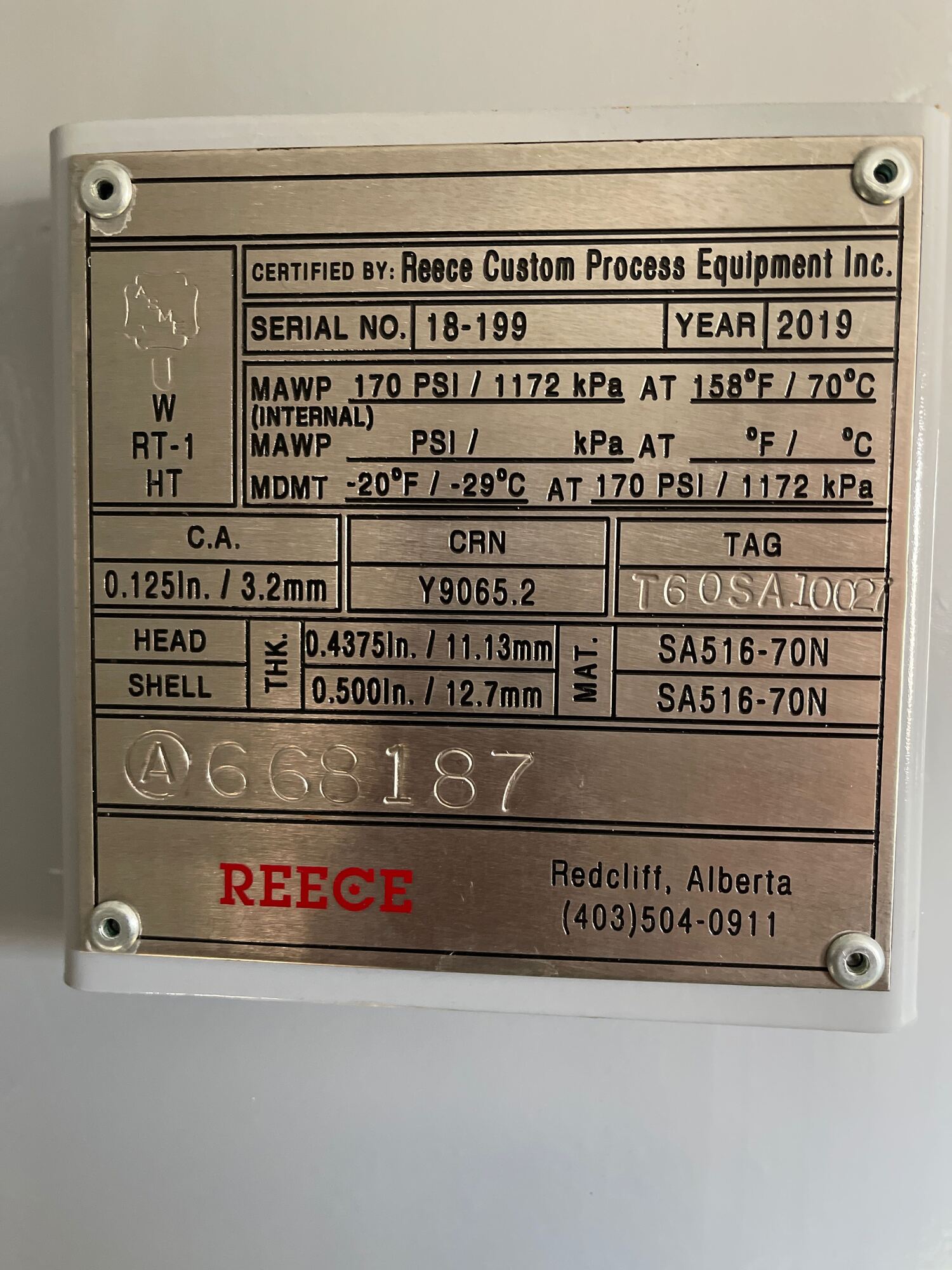 MAWP: 170 PSI @ 158 F