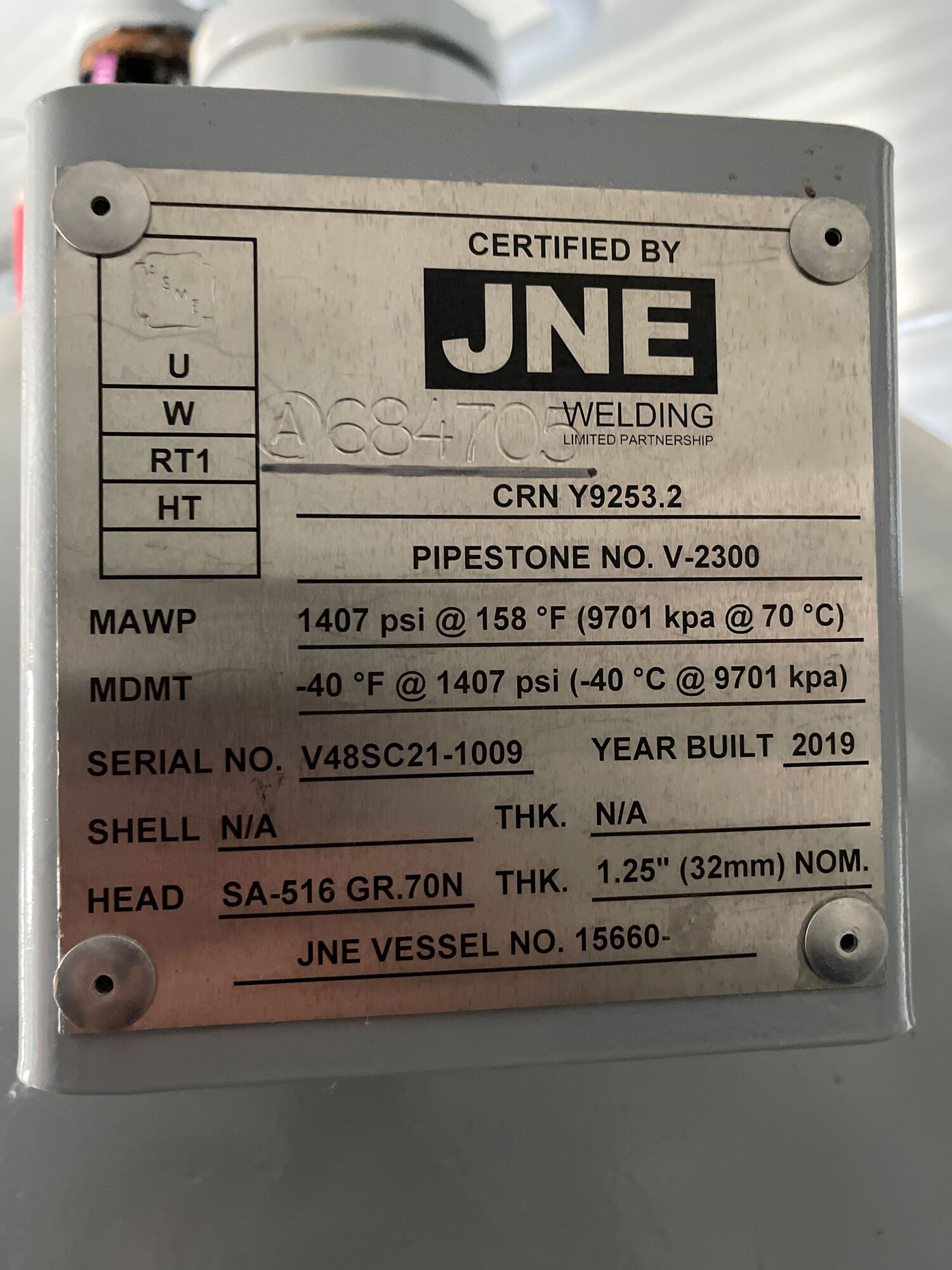 MAWP: 1407 psi @ 158 F