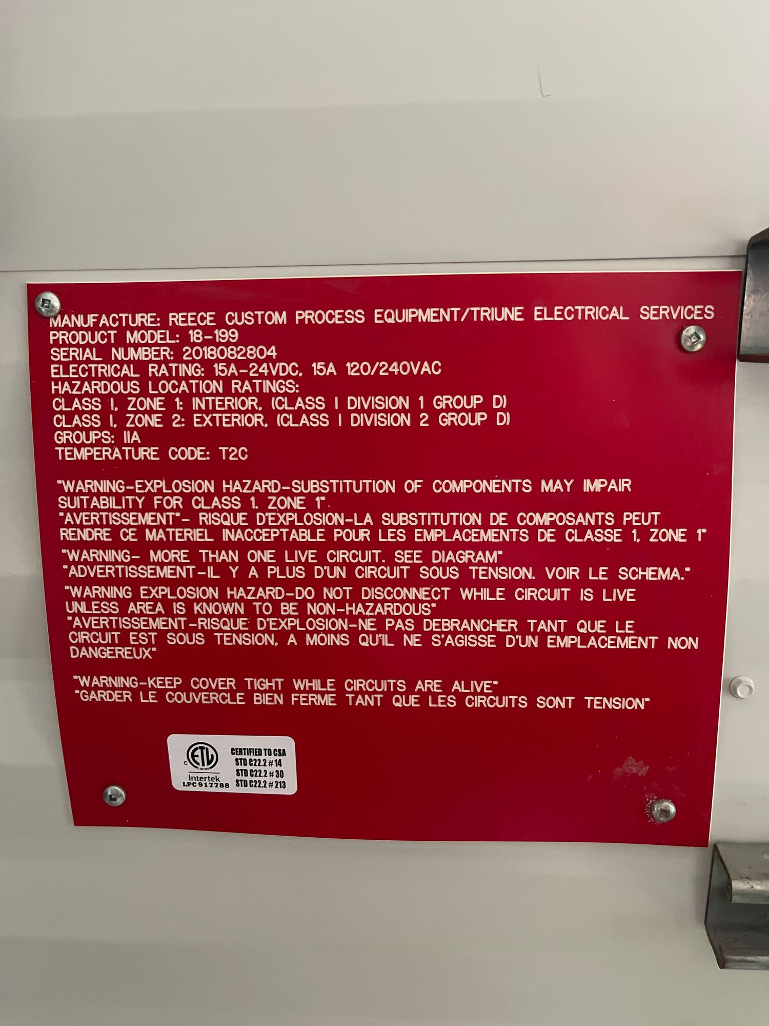 Manufactured By: Reece Custom Process Equipment Inc.