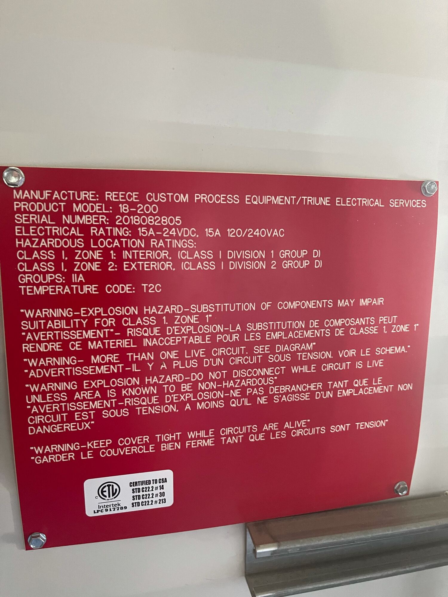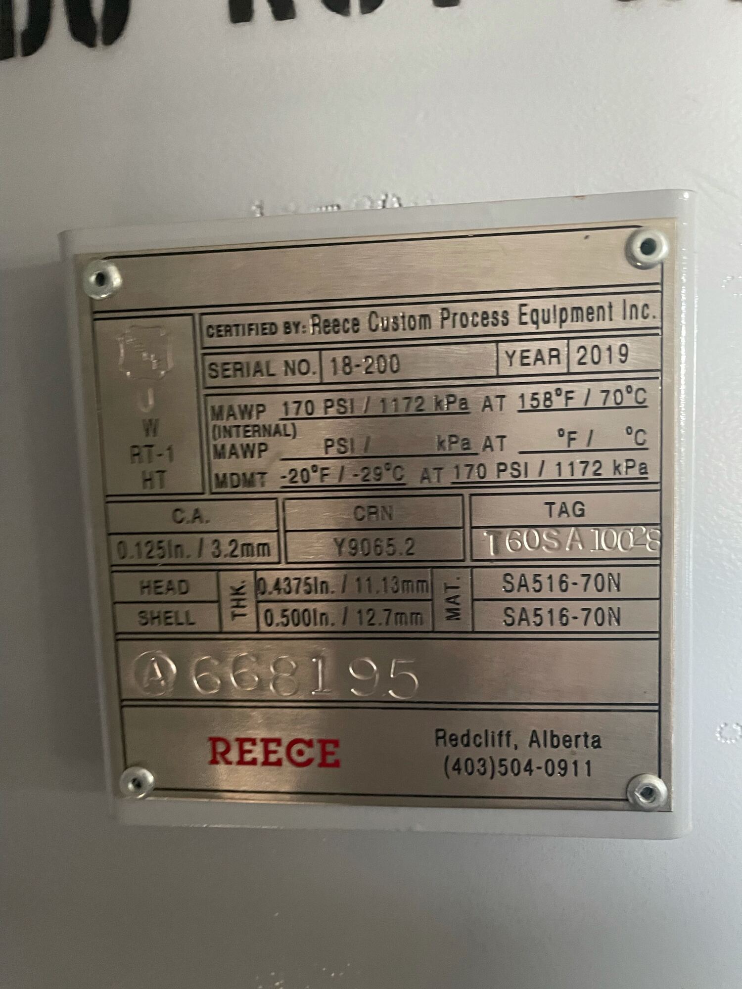 Manufactured By: Reece Custom Process Equipment Inc.